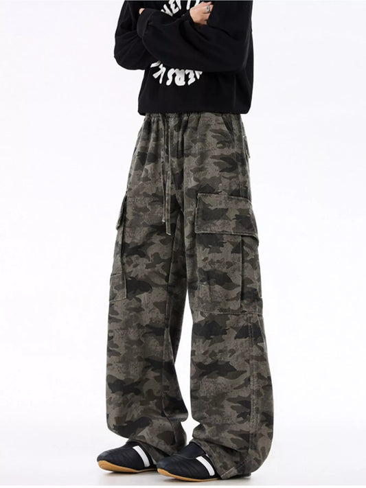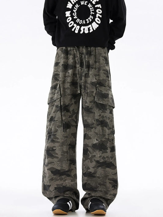 Men's Full Size Relaxed Fit Drawstring Wide Leg Pants Plus Size