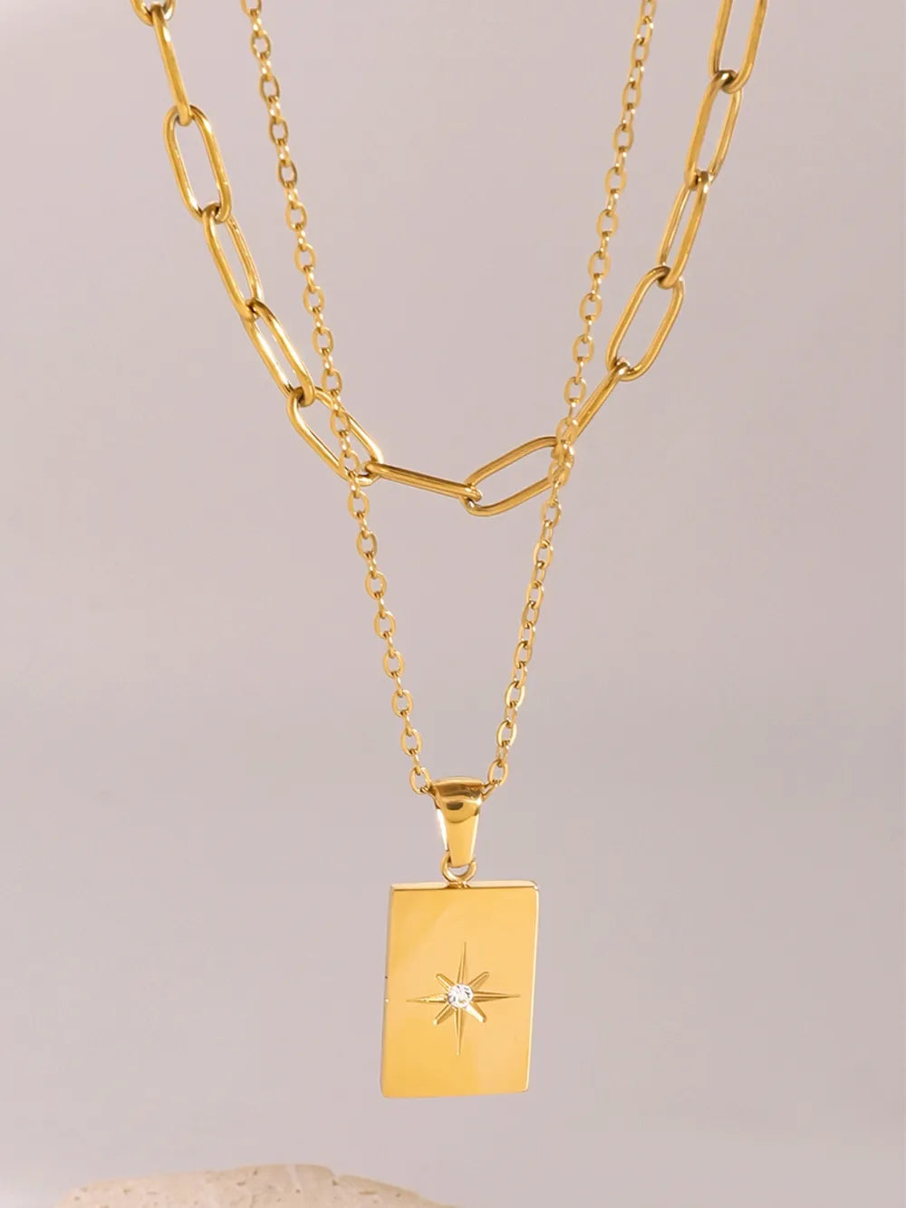 18K Gold-Plated Stainless Steel Double-Layered Necklace