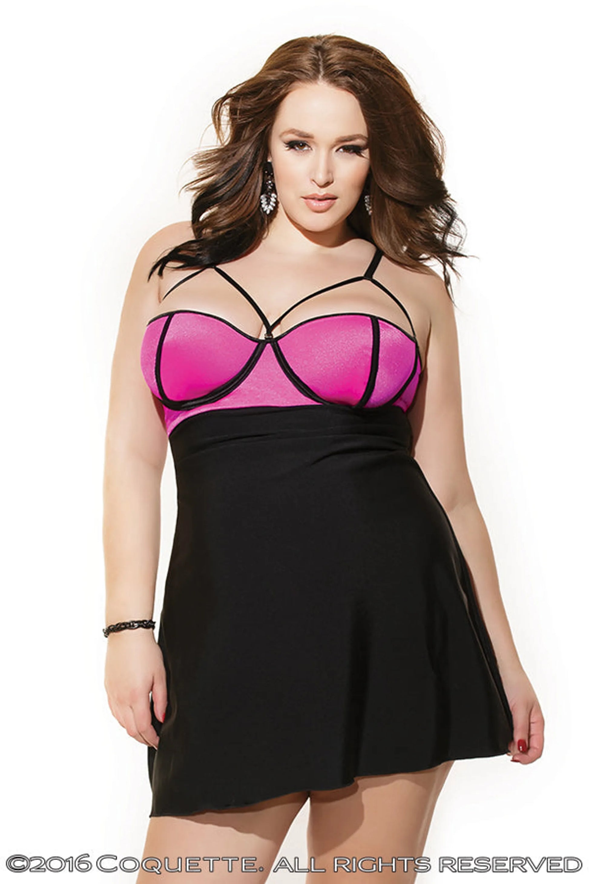 1 PC. Reversible stretch chemise with underwire cups and removable bow.