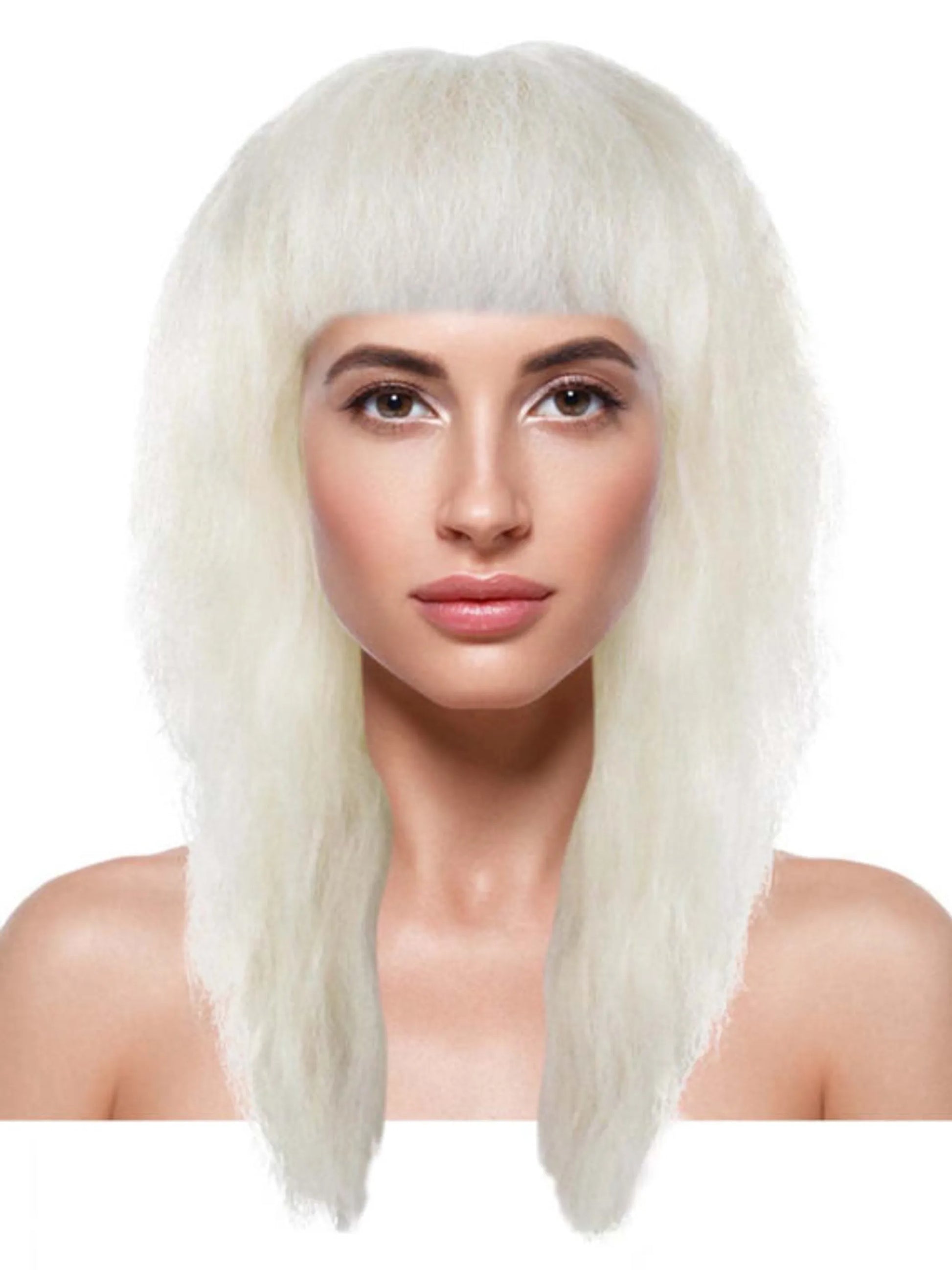Premium Quality Women's 80's Glam Rock Wig with capless cap for comfort and breathability. Adjustable sizing. Hair made of flame retardant synthetic fibers. Includes free hair net. Easy to wash with mild shampoo and cold water. Do not use with Blow dryer, Flat iron or any other hair appliance.