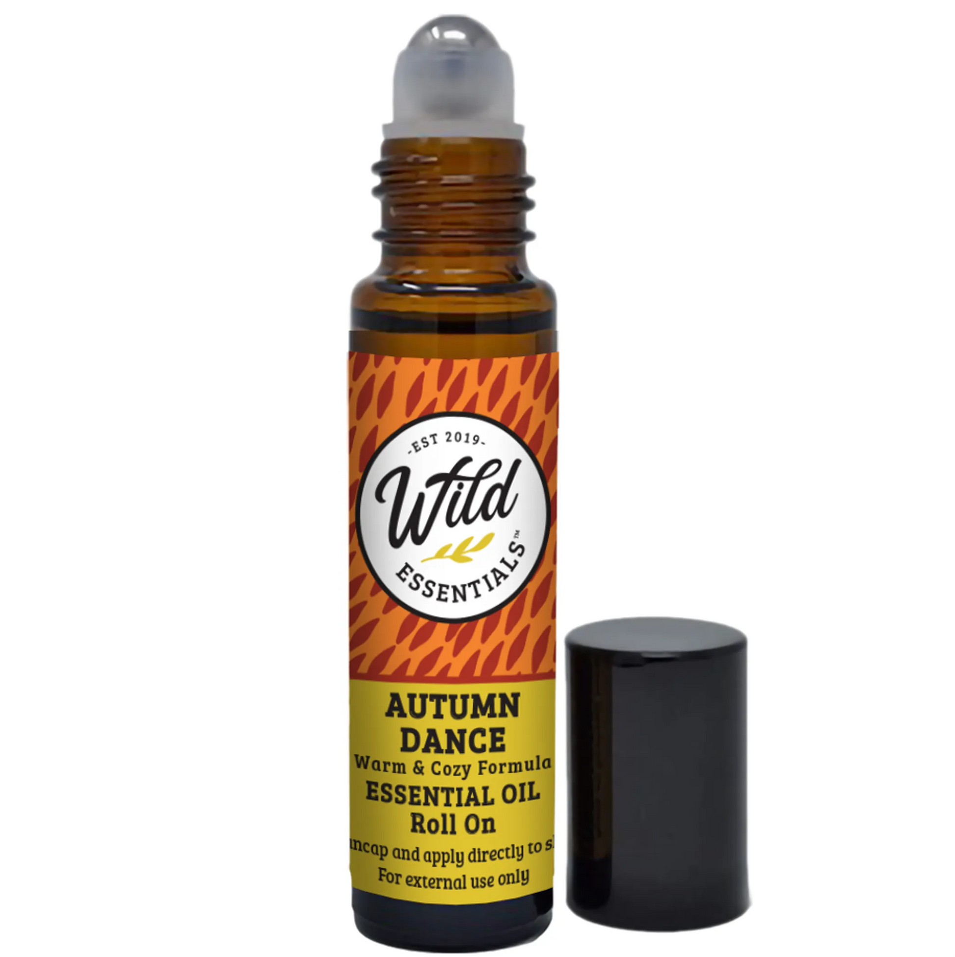 Our Autumn Dance Roll On is a warming cold weather proprietary synergy blend combination of cinnamon, eucalyptus, frankincense, helichrysum, lemon, marjoram and spruce pure essential oils pre-diluted to 5% in Jojoba oil. Simply uncap and roll on to the skin or use as a perfume or massage oil to warm the spirits and soothe the lungs.