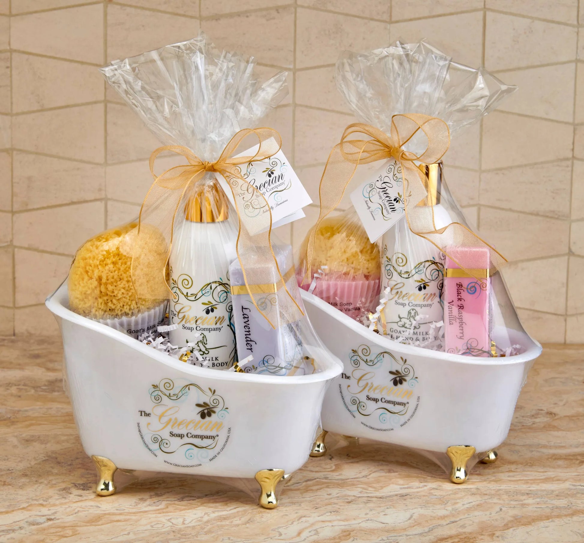 Our new bathtub gift set! It includes an 8oz. Goats milk lotion, a 3oz. Goats milk 'cupcake' soap with an embedded sponge and a 6oz. Goats milk soap bar, all in the same fragrance. These plastic bathtubs can be reused.
