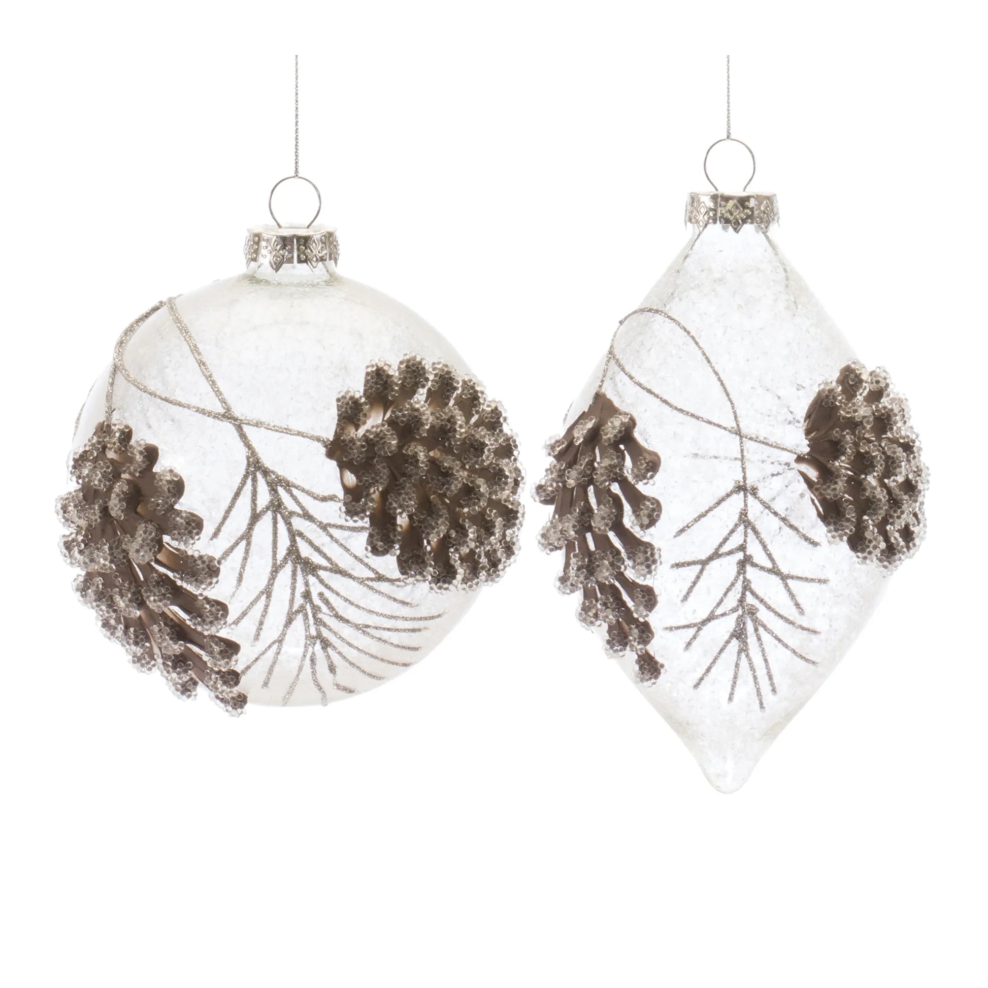 Adorn your Christmas tree and holiday decor with this stunning set of Beaded Glass Pinecone Ornaments. Featuring 6 pieces, the wintry white and chic silver tones paired with the beaded design is the perfect combination to create a memorable display. The quality glass composition and delicate silver string hanging accent is sure to endure for seasons to come. Whether you're adding a touch of cheer to your home or gifting to a loved one, these ornaments will definitely bring smiles.