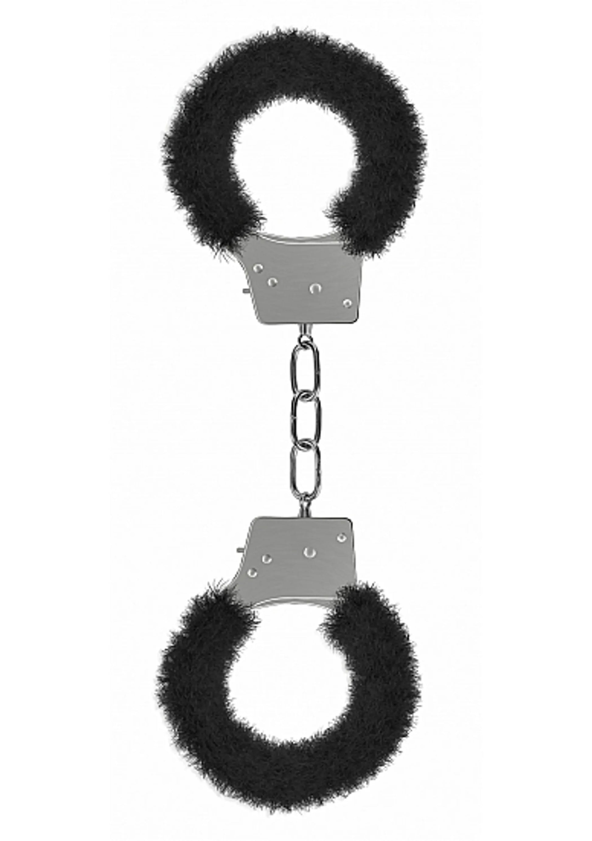 Ouch Beginners Handcuffs Furry Black. Play around and lock up your lover with these great and naughty Beginner's Handcuffs. The locking mechanism has a quick release button in case you lose both keys. Specifications materials Metal and Faux Fur._x000D_