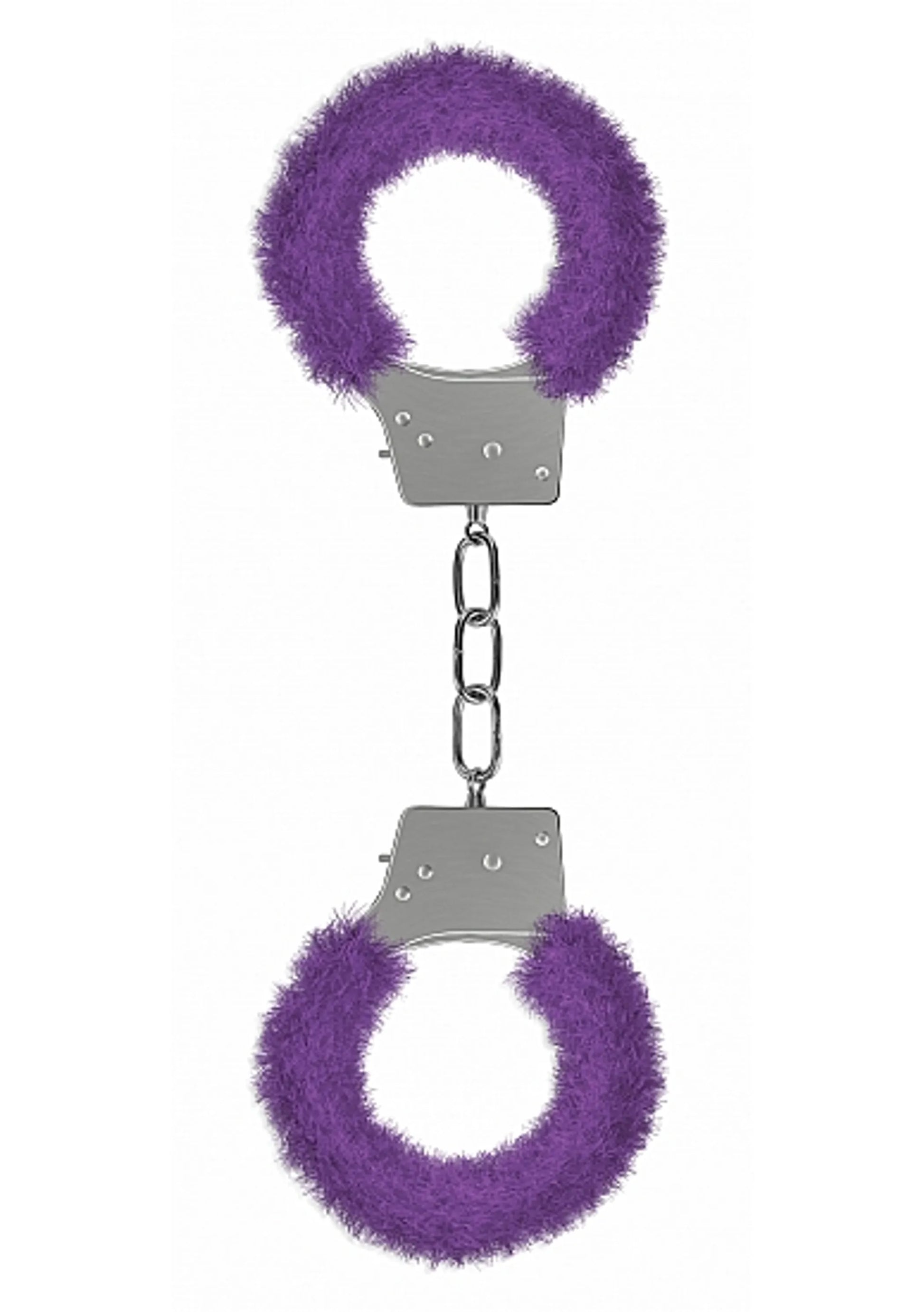 Ouch Beginner's Handcuffs Furry Purple. Play around and lock up your lover with these great and naughty Beginner's Handcuffs. The locking mechanism has a quick release button in case you lose both keys. Materials Metal, Faux Fur. Color Purple.