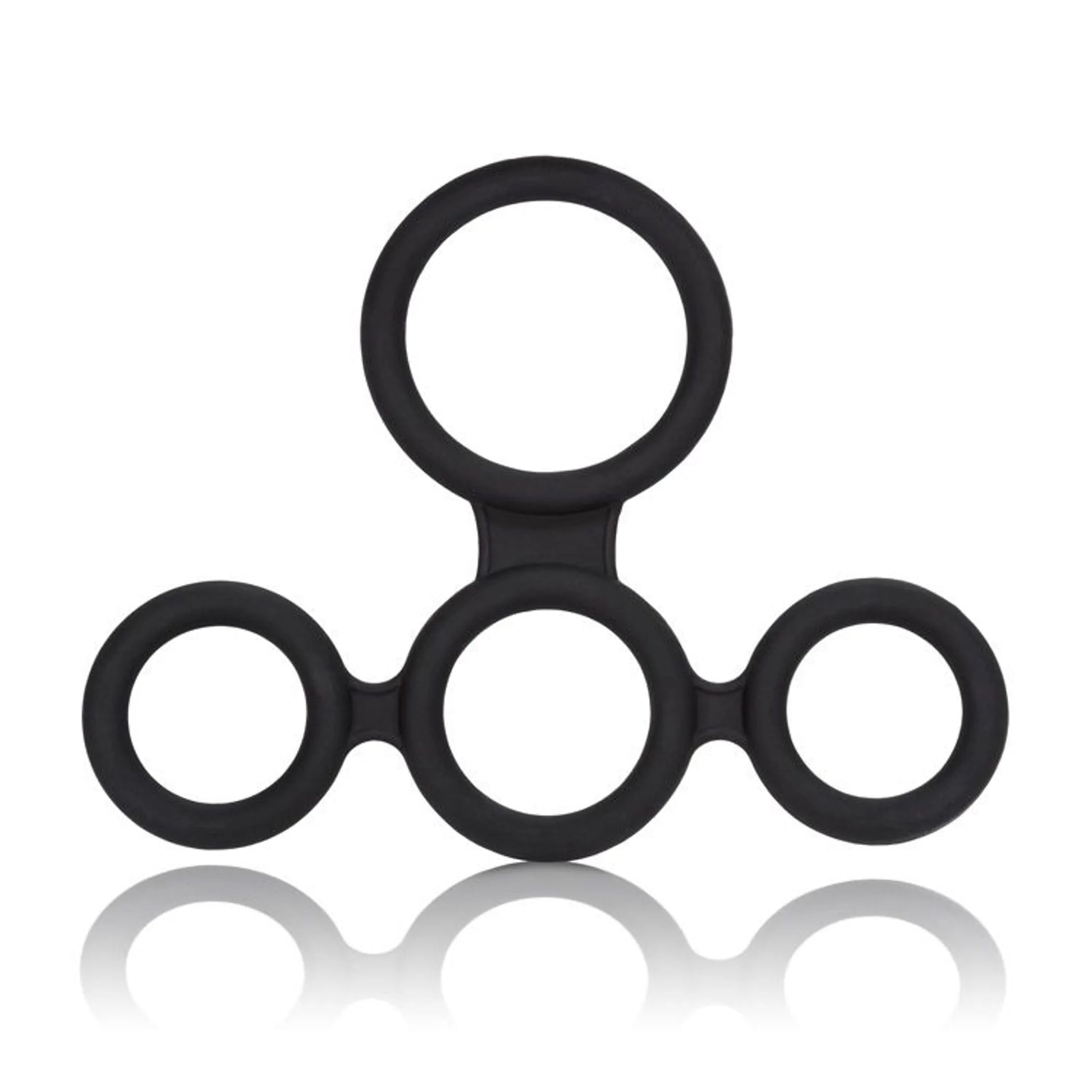 Big Man's Spreader Black Ring from California Exotic Novelties. Get the support you need for the ultimate thrilling orgasm. This Ring is designed to get you hard and keep you there! As simple to dissemble as it is easy to use, you will find cleaning a snap. Designed for the erection aficionado, this four point erection system creates support at its finest. Stretchy and durable Silicone means comfort that lasts. Four rings of pleasure wrap around you in pleasurable constriction to create sensations that you will not soon forget. Made from durable, stretchy Silicone, this enhancement system is incredibly comfortable and built to last. The largest ring slides around the base of your man hood, while the next ring grasps your shaft. The Dual Testicle Rings wrap individually around each, to slightly constrict and separate. Held securely where it counts, your erection is sure to last longer than ever. As the pressure builds, so will the pleasure. Get ready to explode like never before. Wave after magnificent wave of orgasmic pleasure await you with this Big Man's Spreader. Comfort, stamina, and performance come together in one complete package. Enjoy all that your erection has to offer with this precision crafted Ring. Specifications: SKU SE-1426-15-3. Color: Black. Material type Silicone. Features: Phthalate free, Waterproof, non-vibrating cock ring. Measurements: 2 inches Base Ring Diameter. 1.5 inches Shaft Ring Diameter. 1.25 inches Spreader Rings Diameter. Bulk weight 1.1 ounces. Package: 1.8 ounces. Package: 1.5 inches by 4 inches by 5.5 inches. Categories: Bondage, Fetish, Kink, Love Rings, Sex Toys for Men, Cock Rings, Couples Cock Rings, Men's Cock and Ball Gear. 2023.