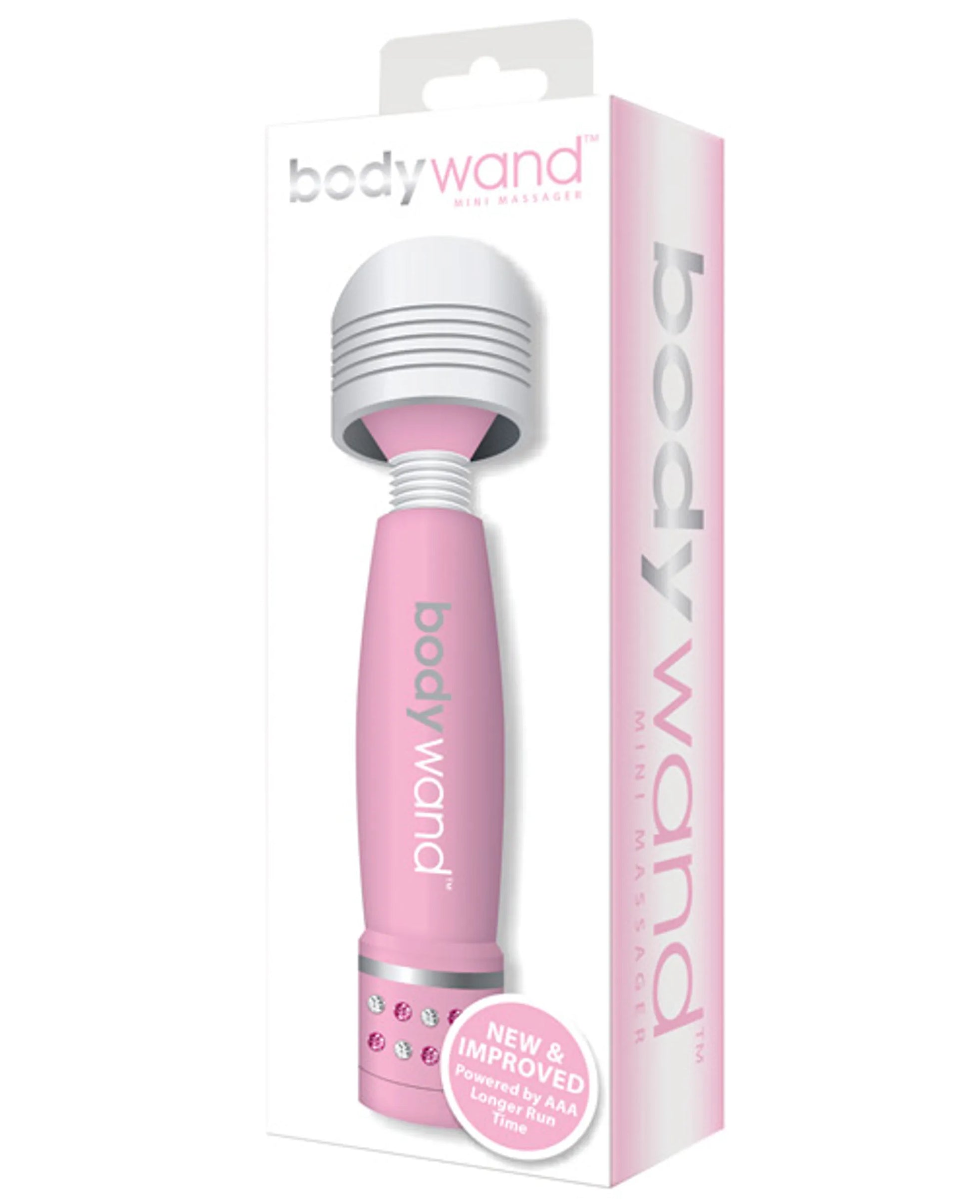 New and improved Bodywand Mini Pink Massager. The Bodywand Mini Massager is the party girl of the bunch. Like a neon night on the town, the Mini Massager glows in pink rhinestones, compact enough to fit into any purse. But do not be fooled by size. The Bodywand Mini Massager delivers maximum power. The rounded, soft touch head is mounted on a flexible neck to reach all angles and best of all, this 4 inches firecracker is completely splash-proof for use in all environments. It is powered by 6 LR44/AG13 watch batteries, all of which are included. Features: strong power in a small case. Flexible neck. Control dial for multiple speeds. Convenient for travel. Bodywand personal massager for every part of your body. Bodywand is a registered trademark for X-Gen Products. Colors may vary. X-Gen Products - Bodywand. Categories: Magic Wands, Body Massagers, Body Massagers, Palm Size Massagers, Health and Beauty Aids. Restricted, Amazon Restricted. 2023.