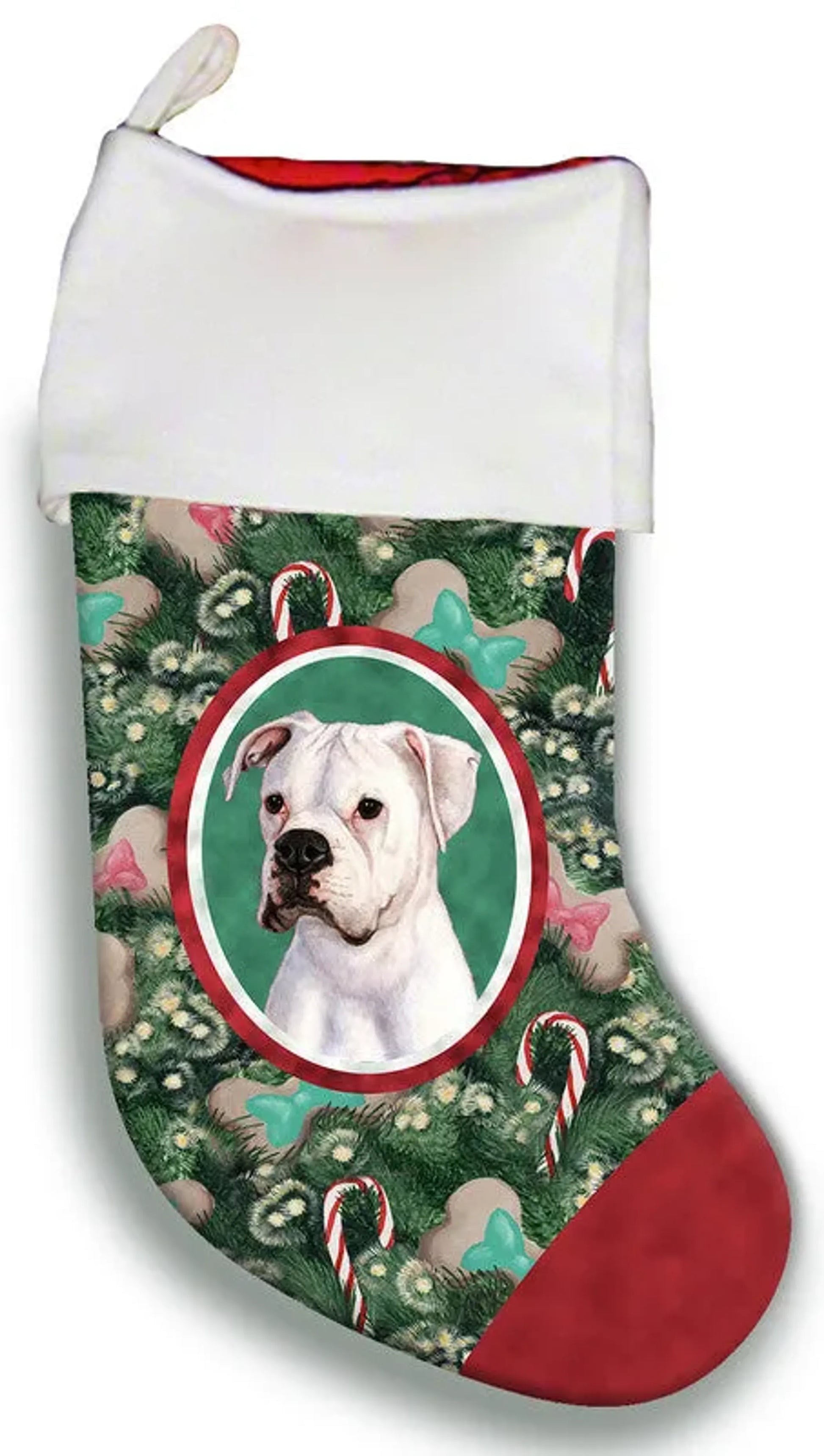 Boxer White Uncropped - Best of Breed Christmas Stocking
