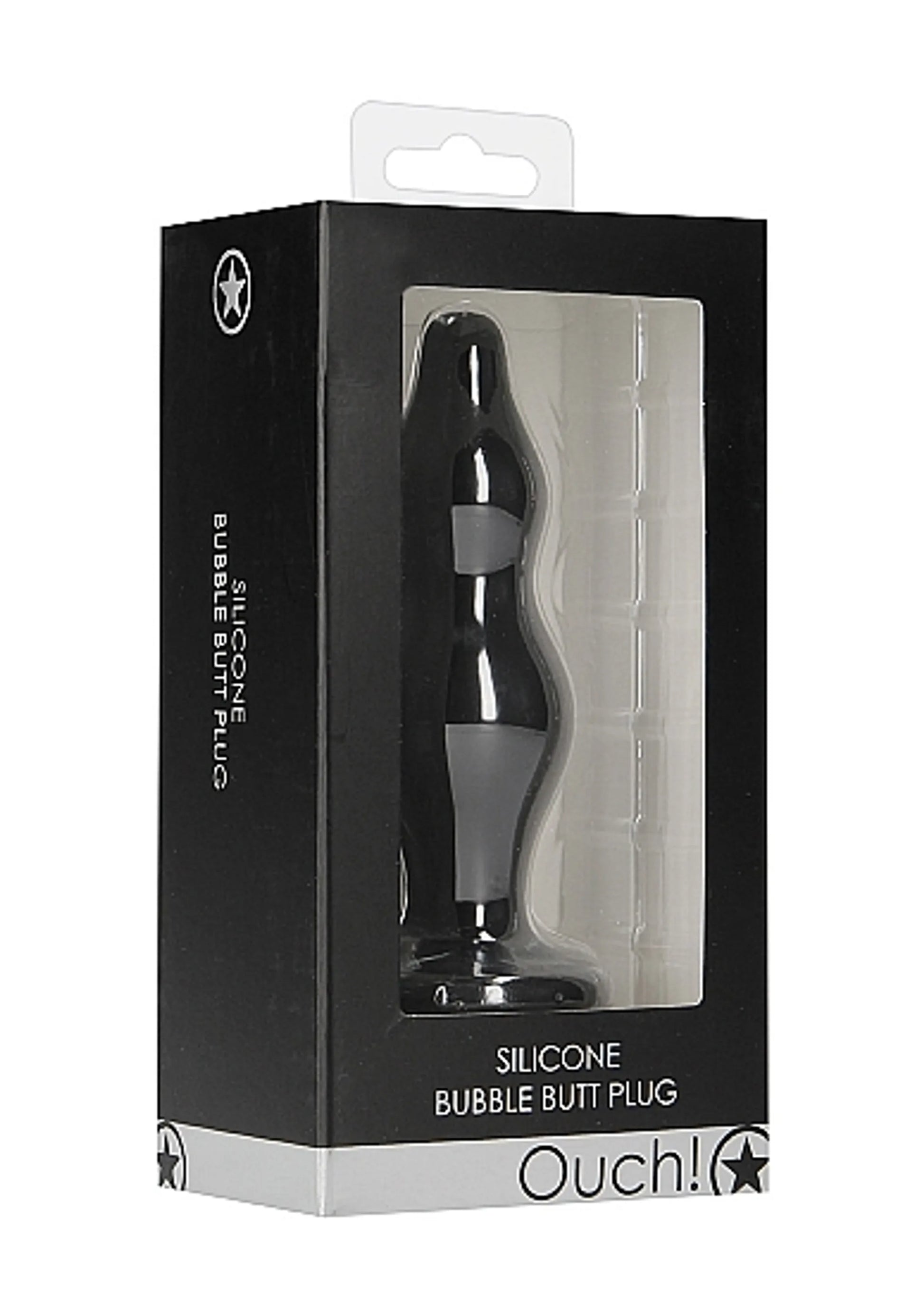 Ouch! Silicone Bubble Butt Plug Black from Shots Toys. This butt plug is made of silky soft silicone and is tapered at the tip for an easy and comfortable insertion. The plug has been developed with an ingenious design for maximum anal stimulation, that hits all the right spots at the same time. The base of the plug doubles up as a handy suction cup for some hands free fun or a safety base to keep it safely in place. Package weight 3.14 ounces. Product dimensions 4.57 inches by 1.81 inches. Product weight 3.14 ounces. Product diameter 1.38 inches. Insertable length 4.37 inches. Made using body safe, phthalate free, latex free materials Silicone. Please use only water based personal lubricant, never Silicone based lubes.
