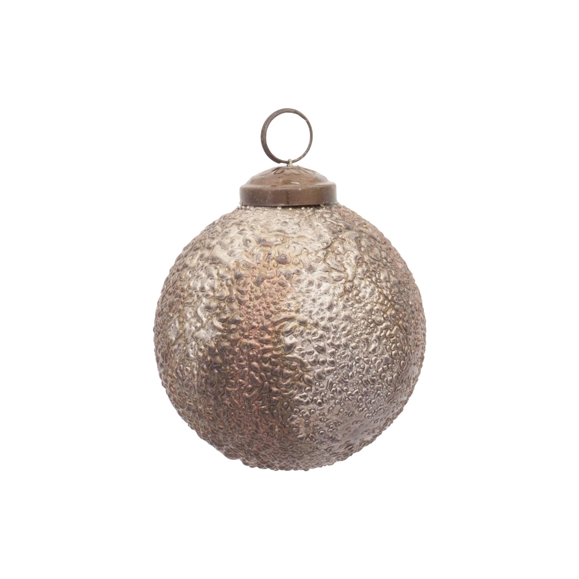 Adorn your Christmas tree and holiday decor with this stunning set of Bubbled Glass Ball Ornaments. Featuring 12 pieces, the rustic brown tones paired with the bubbled design is the perfect combination to create a memorable display. The quality glass composition and delicate brass ring hanging accent is sure to endure for seasons to come. Whether you're adding a touch of cheer to your home or gifting to a loved one, these ornaments will definitely bring smiles.