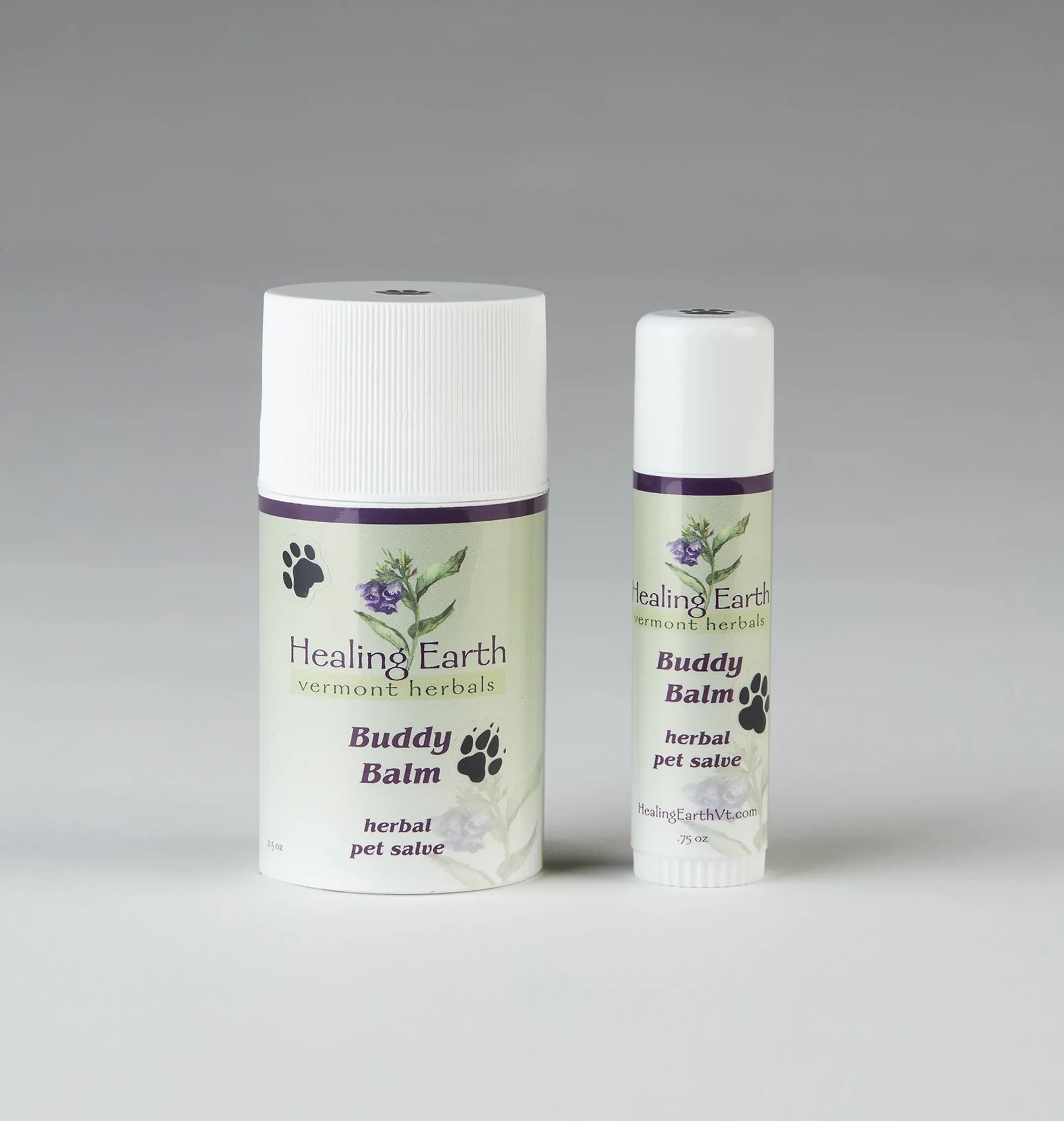 Perfect for both cats and dogs, super-gentle Buddy Balm heals dry, cracked paws and noses; cuts; scrapes; skin irritations; and bug bites.