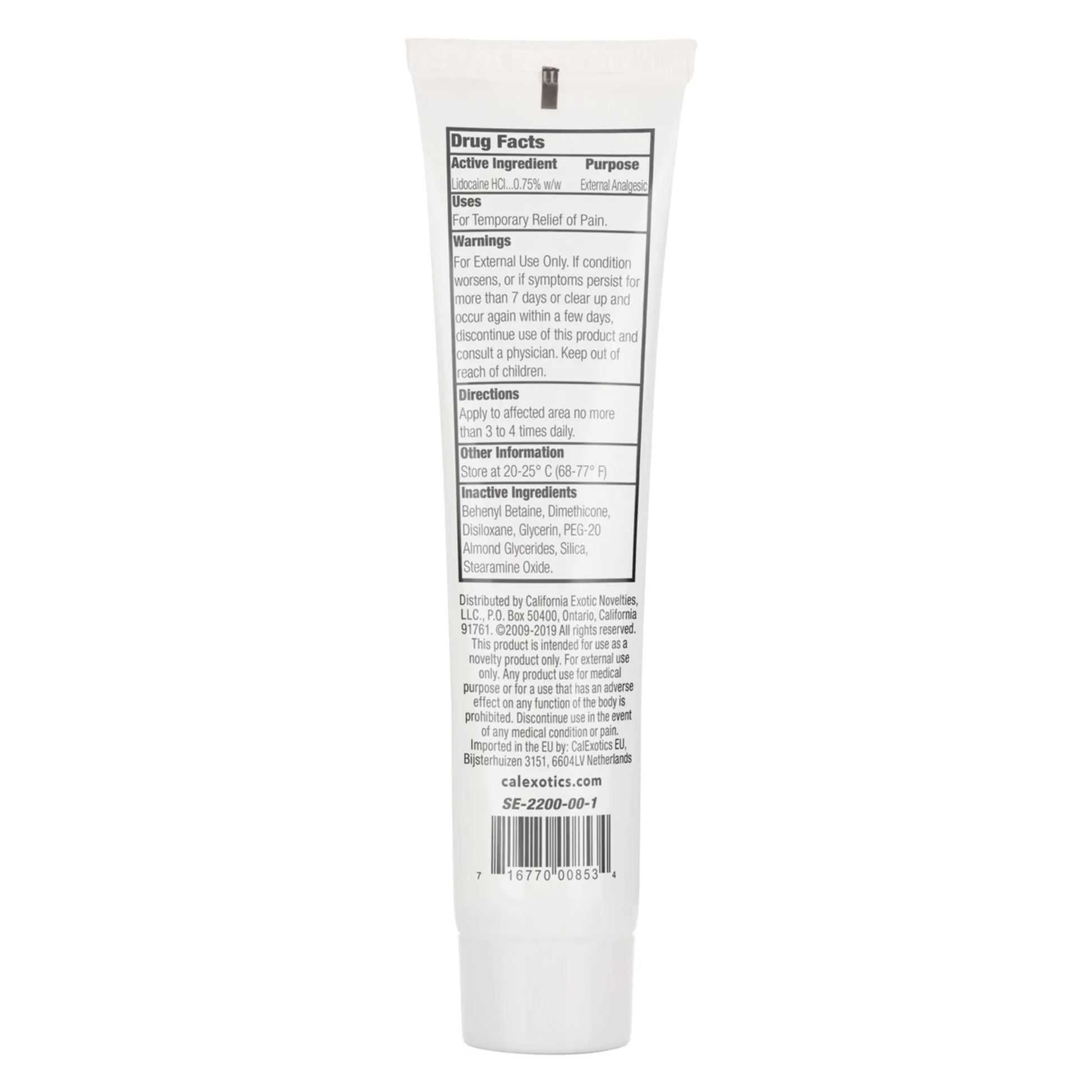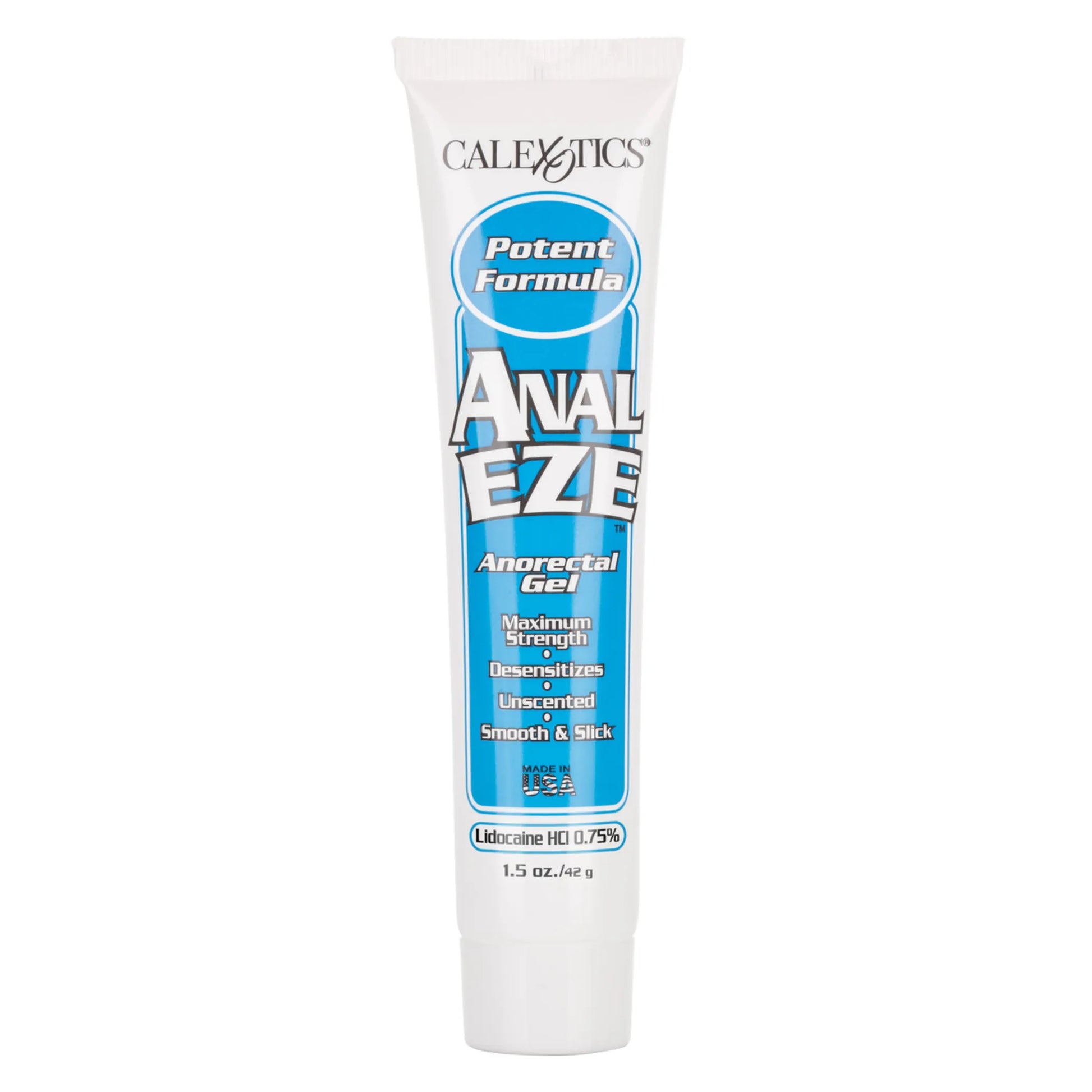 (NON-RETAIL, BULK PACKAGING) Bulk Anal Eze Anorectal Gel External Analgestic Tube 1.5 fluid ounces from California Exotic Novelties. Relax and enjoy unlimited stimulation satisfaction with the Anal Eze Gel. The unscented Desensitizing Gel is just what you need for extended anal exploration and probing action. The cool to the touch, refreshing Anal Gel is smooth and slick and delivers maximum strength benefits. Use the gel to enhance the pleasure of erotic anal play and anus penetration. Use fingertip application to lubricate your love hole, and get ready to share intensified orgasmic pleasure with your lover after applying the Anal Gel. The sensual Anal Gel is designed to eliminate any discomfort during anal intercourse. The Anal Gel provides even coverage and ultimate sensitivity protection for a safe and comfortable encounter every time. The high potency formula ensures your play time fun is always enjoyable and unforgettable. The easy to use Gel is suitable for first time and experienced users, and makes a great addition to an adult toy kit. Enhance your Anal Probing experience by applying the Gel before indulging in your secret erotic fantasies. The Anal Gel is supplied in a 1.5 fluid ounces size tube for easy application and use. The portable, pocket friendly tube is ideal for indulgent intimacy on the move. Apply a layer of soothing Gel directly to the anus and prepare for a mind blowing encounter. Desensitivity also maximizes hard and fast love action and improves your anal penetration pleasure. The gel can also be used for sensual experimenting with Anal Beaded Probes and Vibes. Anal Eze is a Desensitizing Gel used to enhance the pleasure of anal penetration. New high potency formula. Desensitizing Gel works great when performing Anal Sex. Apply to affected area 3 to 4 times daily. Maximum strength. Smooth and silky. Unscented gel comes in a 1.5 fluid ounces. Active ingerdient: Lidocaine HCl .75%. Anal Eze Gel is a registered trademark for California Exotic Novelties. Sex toys and sexual wellness. Made in the USA. New high potency formula. Anal Eze Gel Bulk without packaging. Desensitizing Gel works great when performing anal sex. Maximum strength. Smooth and silky. Unscented Gel comes in a 1.5 fluid ounces or 44ml e. Anal Eze Gel is a registered trademark for California Exotic Novelties. Sex Toys and Sexual Wellness. Made in the USA. Categories: Lubricants, Desensitizing, Gels, Anal Lubes, Lotions, Sprays, Creams, Health and Beauty Aids. 2023.