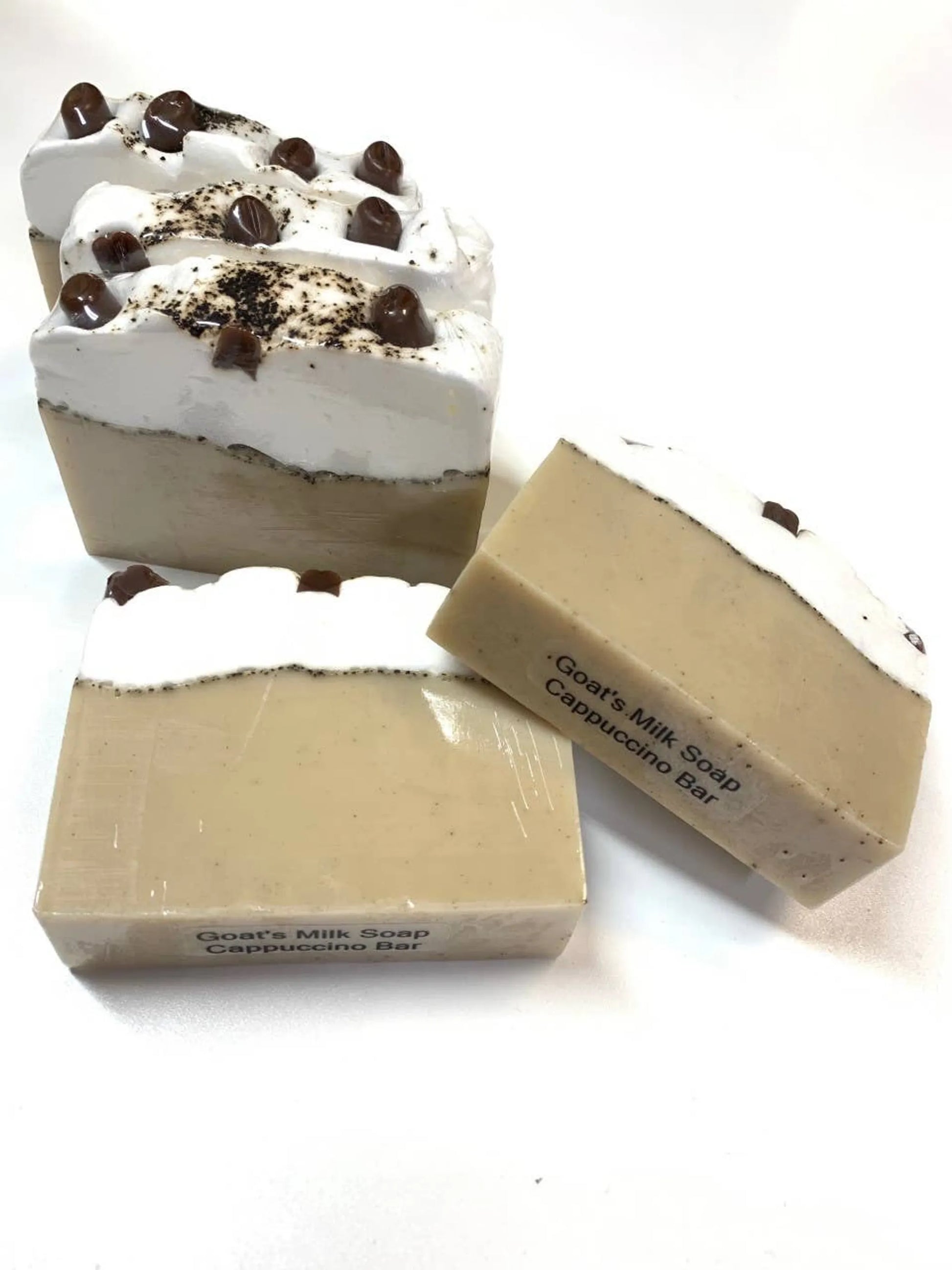 NEW! Our Cappuccino Bar is a new creation complete with whipped soap topping, soap coffee beans and smells like a fresh brewed cappuccino!