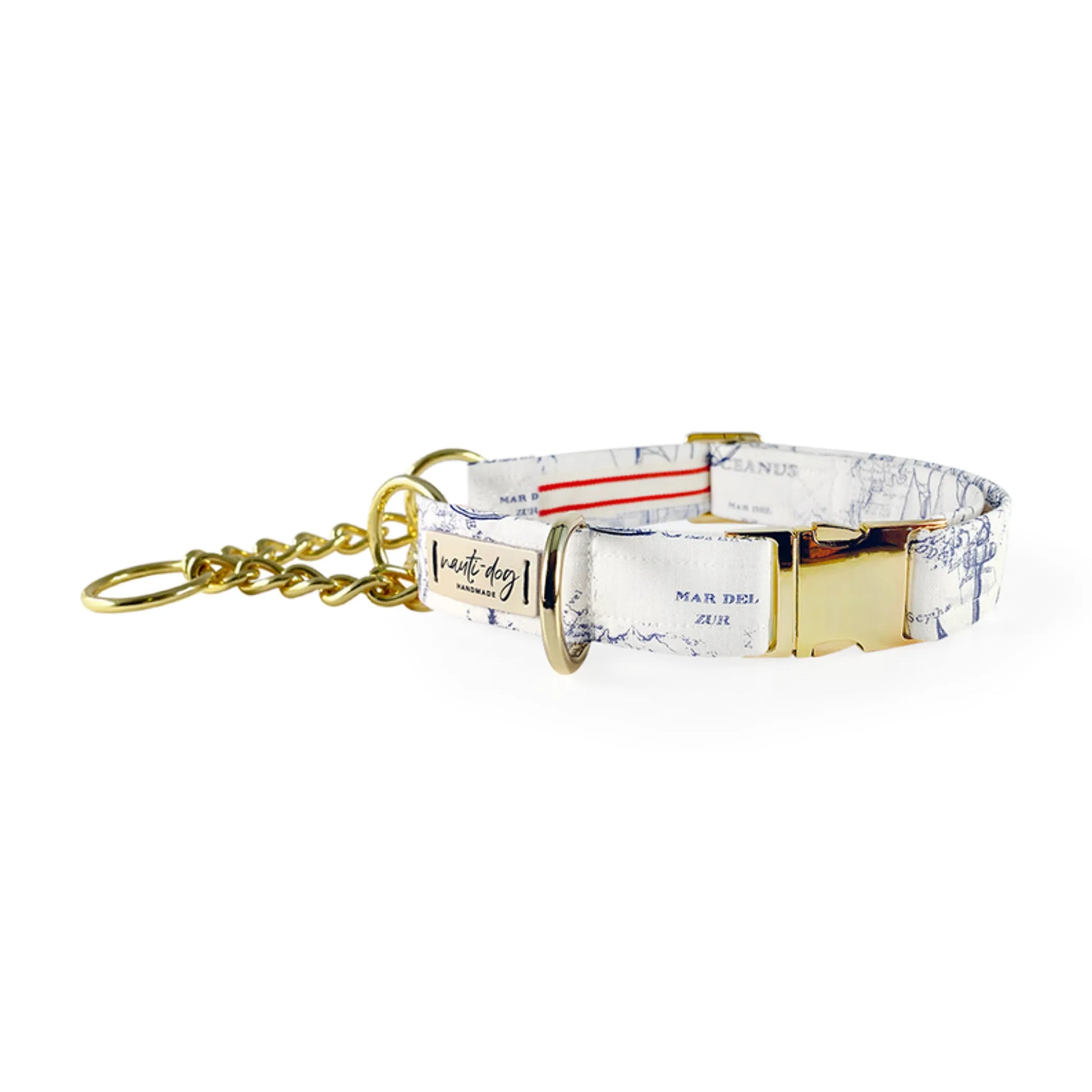 Carta Marina Light Vintage Nautical Toile Buckle & Martingale Dog Collar - Pack Of: 1
