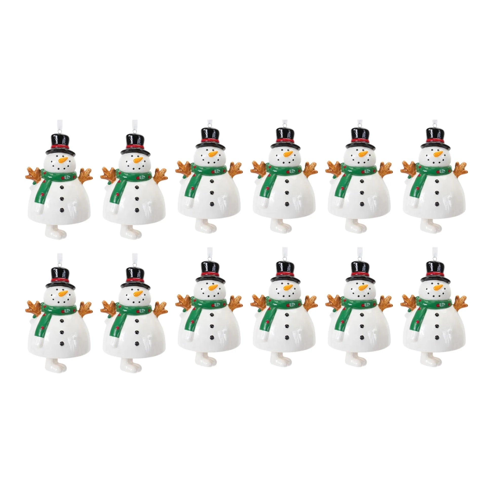 Add a whimsical touch to your Christmas Tree with this beautiful set of Ceramic Snowman Bell Ornaments. Featuring 12 pieces, this set's festive green and white tones, traditional snowman design, and top hat and scarf accents are the perfect combination to create a memorable display. The quality ceramic composition with ribon string hanger is sure to endure for seasons to come. Whether you're adding a touch of cheer to your home or gifting to a loved one, these ornaments will definitely bring smiles to your home.