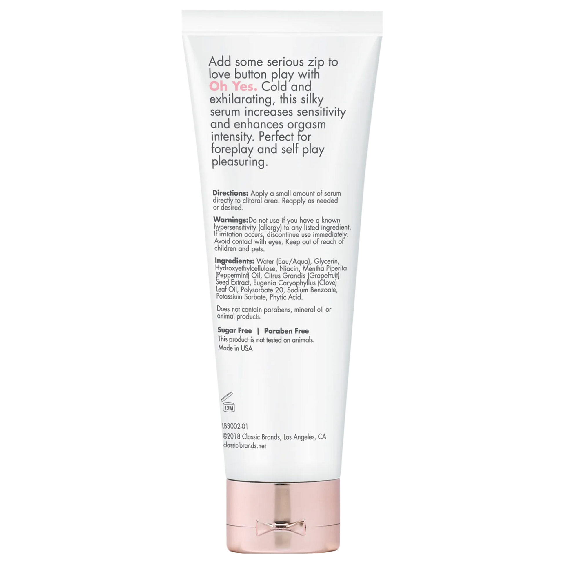 CGC Oh My Clitoral Stimulant Cooling 1 fluid ounce from Classic Erotica. Fragrance free. Add some serious passion to love button play with Oh My. Cooling and exhilarating, this silky serum increases sensitivity and enhances orgasm intensity. Perfect for foreplay and self play pleasuring. Cooling and tingly serum, ideal for clitoral arousal and enhanced sensation. Ideal for toy, self and couple's play. This product does not contain gluten or sugar. This product does not contain parabens or mineral oil. This product is not tested on animals. Ingredients: Water, Glycerin, Hydroxyethylcellulose, Niacin, Mentha Piperita Peppermint Oil, Citrus Grandis Grapefruit Seed Extract, Eugenia Caryophyllus Clove Leaf Oil, Polysorbate 20, Sodium Benzoate, Potassium Sorbate, Phytic Acid. How to use: apply a small amount of serum directly to clitoral area. Reapply as needed or desired. Warning: do not use if you have a known hypersensitivity allergy to any listed ingredient. If irritation occurs, discontinue use immediately. Avoid contact with eyes. Keep out of reach of children and pets. Made in the USA. Categories: Valentine's Day, Erotic Body Lotions, Lubricants, Cooling, Tingling, Lotions. Restricted, Amazon Restricted. 2023.
