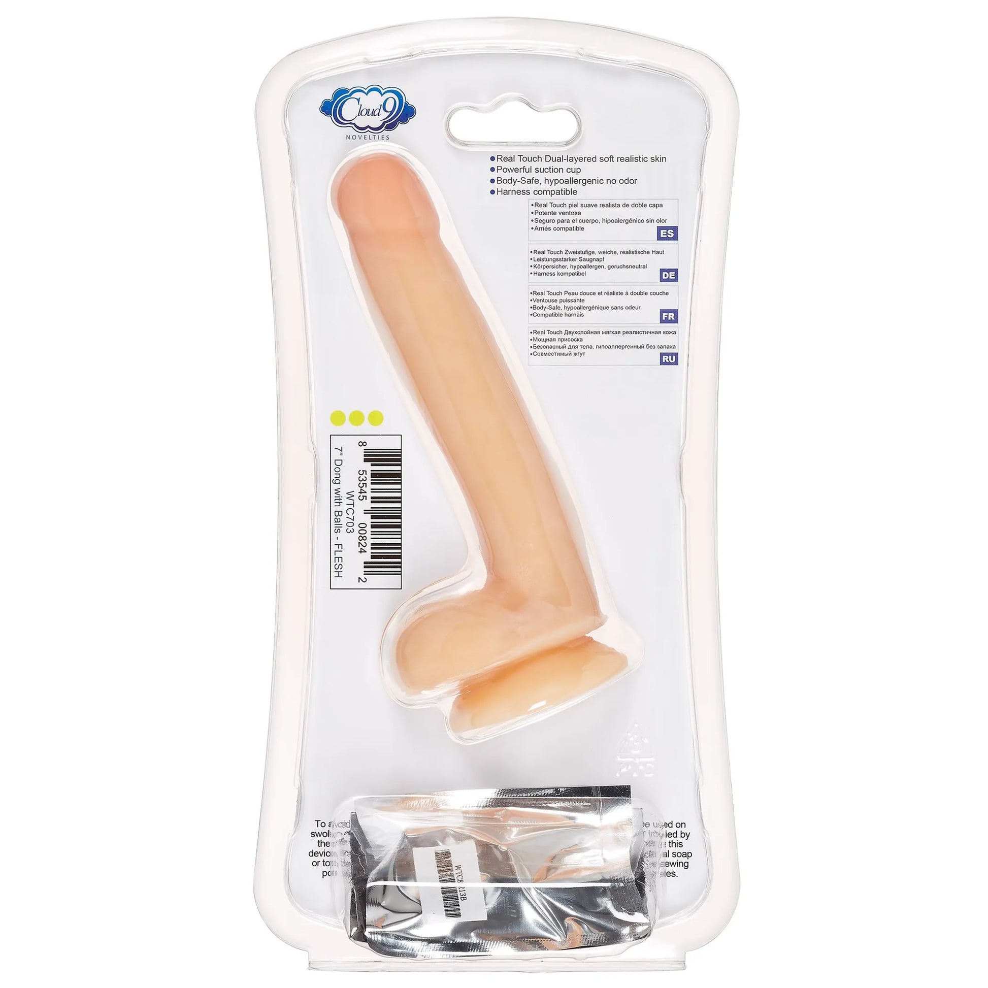 Cloud 9 Dual Density 7 inches Dildo Real Touch Realistic Painted Veins with Balls Light. New improved strong suction cup base. Improved soft exterior dual layered life like layer skin with insider firm core. Dual Density Real Touch Dong made in the Mexico. Dual Layered soft realistic outer skin for pleasure. Designed to recreate the soft outer skin feel with realistic dual layers with a soft outer skin for optimum pleasure. This Real Touch skin like exterior offers a smoother feel with realistic size and shapes for enhanced pleasure. Hand crafted in body safe hypoallergenic Thermoplastic Elastomer TPE material. Each dual density Cloud 9 Real Touch included with your Dual Density dildo is a free HD Streaming video offer card. Features: powerful suction cup. Body safe, hypoallergenic materials. Harness compatible. Phthalate free. Life like texture. Realistically detailed veins. Categories: Dildos, Dongs, Realistic Small and Medium Dildos, Dildos and Dongs Realistic. 30 day limited warranty. Made in China. New improved suction cup base. Shipping weight 10.2 ounces. Video. MAPs price $44.95 added. Restricted, Amazon Restricted. 2022.
