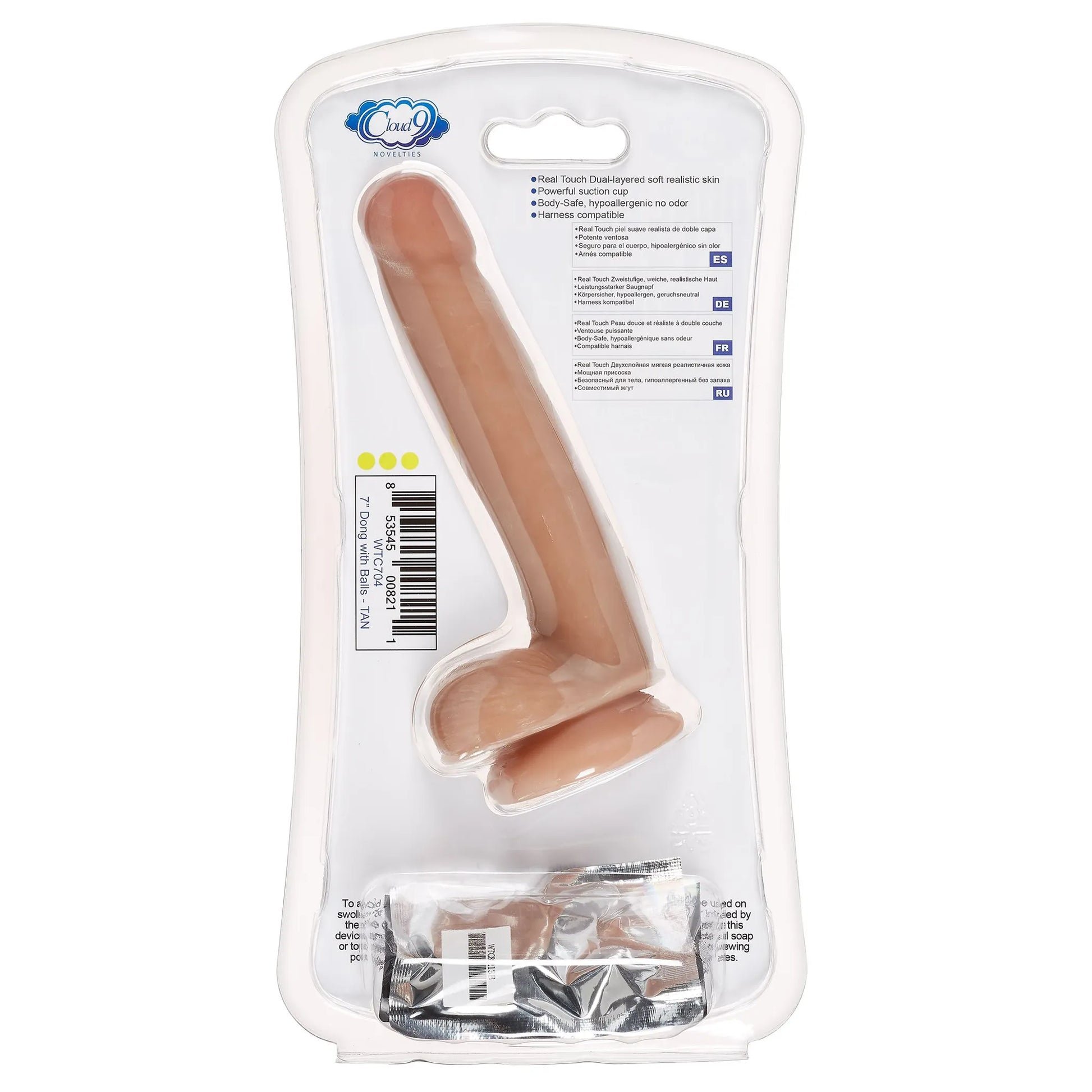 CLOUD 9 DUAL DENSITY DILDO TOUCH 7IN W/ BALLS TAN/ MOCHA