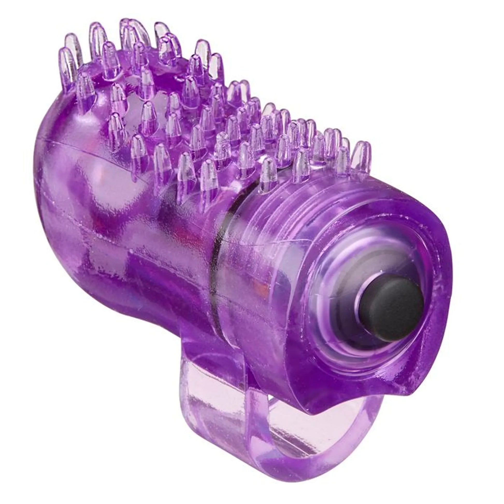 The Cloud 9 Novelties Powerful fun Finger Vibe Purple includes a vibrating one speed motor with a stretchable band. Wear it on your finger with the ticklers facing down to stimulate your partner with maximum pleasure. This vibe is waterproof and made from phthalate free Thermoplastic Elastomers TPE that stretches for a perfect fit every time. The included removable bullet gives this finger vibrator new dimension. Try it on your clitoris, nipples or his nipples and testicles too. Powerful fun Finger Vibe is angled for precision stimulation. Ticklers located at the tip provide enhanced stimulation similar to a French tickler. Requires three AG13 batteries, included along with bonus batteries. Clean all toys before and after use. Vibrator specifications phthalate free Thermoplastic Elastomers TPE, body safe. Waterproof vibrations. Manufactured for Cloud 9 Novelties. Made in China. 30 day limited warranty. Weight .12 pound. Please note item contains small parts. Choking hazard. Always store away from small children. Categories: Sex Toys for Women, Vibrators, Finger Vibrators. Restricted, Amazon Restricted. 2023.