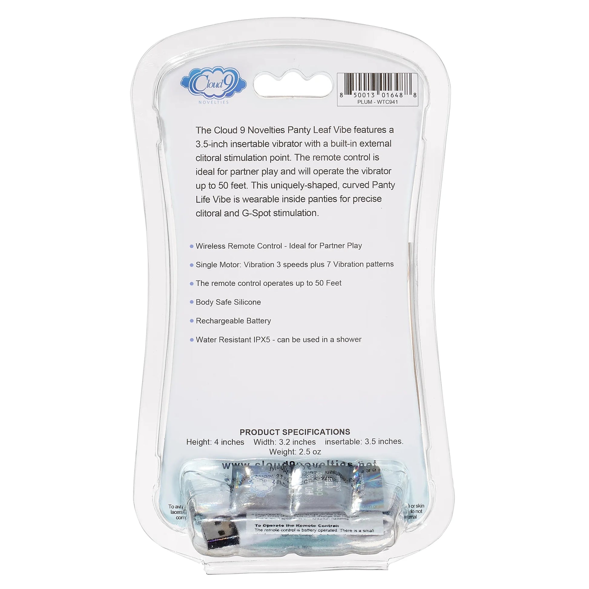 CLOUD 9 HEALTH & WELLNESS WIRELESS REMOTE CONTROL PANTY LEAF" VIBE - PLUM"