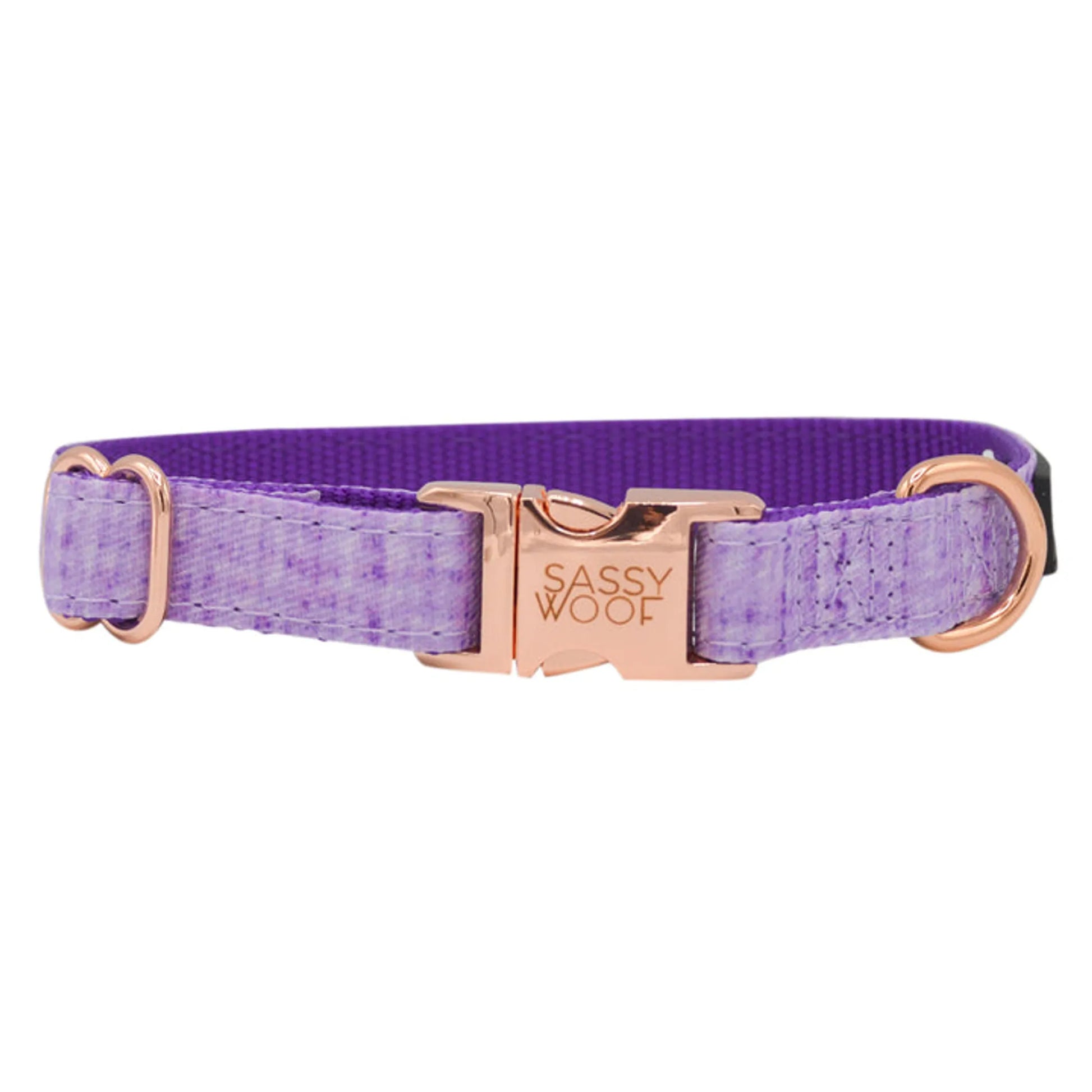This stunning collar is a staple for every dog's wardrobe. This color will pop on any pup! Walk in style with our beautifully crafted collar with a classy look. Featuring rose gold accents. Fully adjustable.
