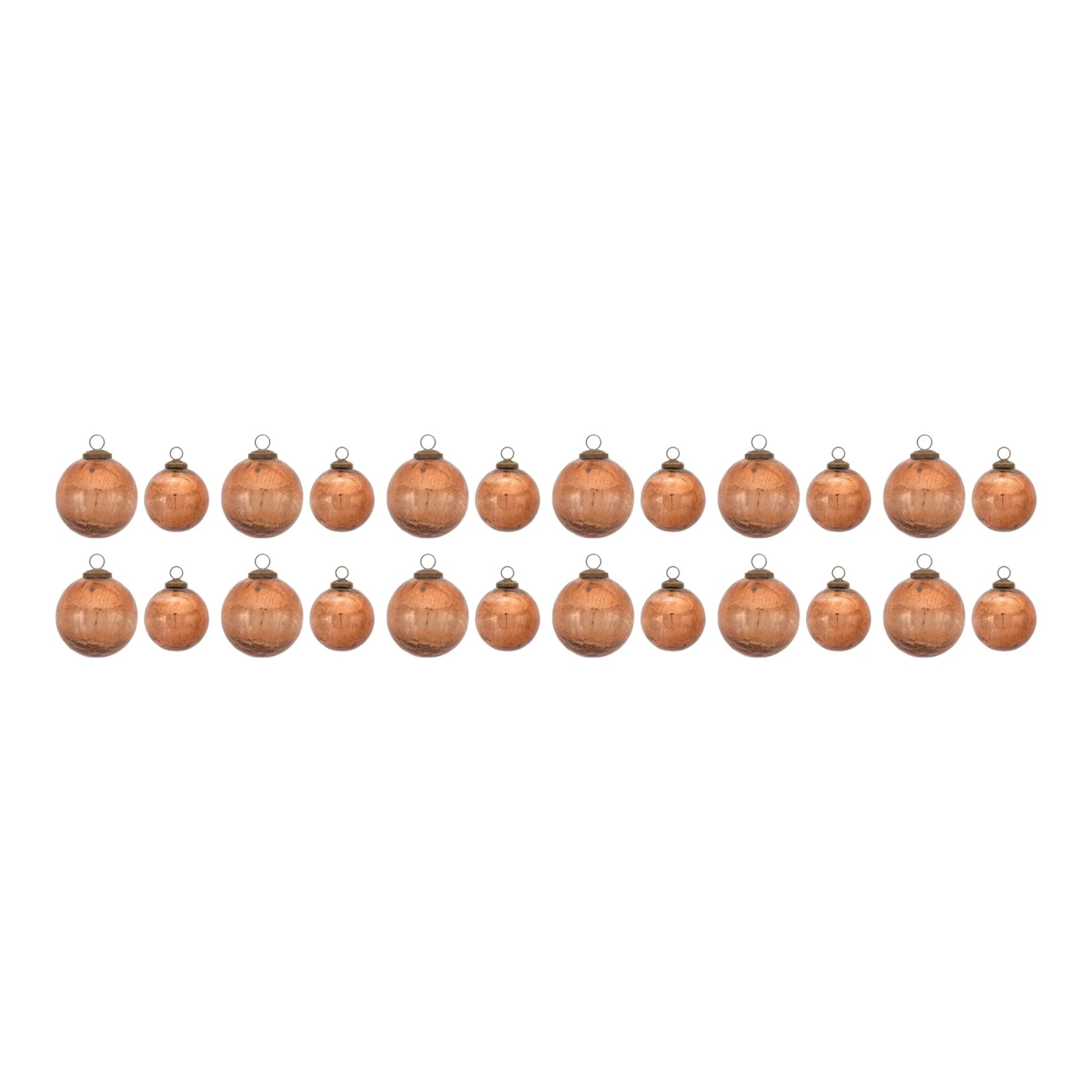 Adorn your Christmas tree and holiday decor with this stunning set of CCopper Crackle Glass Ornaments. Featuring 6 pieces, the rustic copper tones paired with the crackled design is the perfect combination to create a memorable display. The quality glasscomposition and delicate brass ring hanging accent is sure to endure for seasons to come. Whether you're adding a touch of cheer to your home or gifting to a loved one, these ornaments will definitely bring smiles.