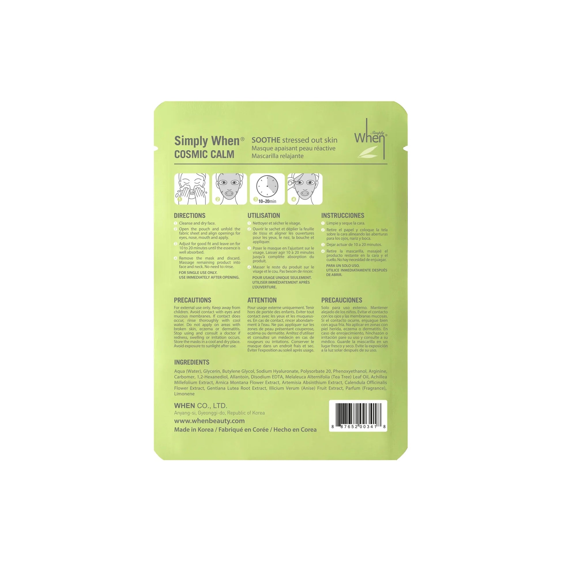 When your skin is stressed out, turn to Simply When Cosmic Calm Soothe Cotton Linter Sheet Mask.