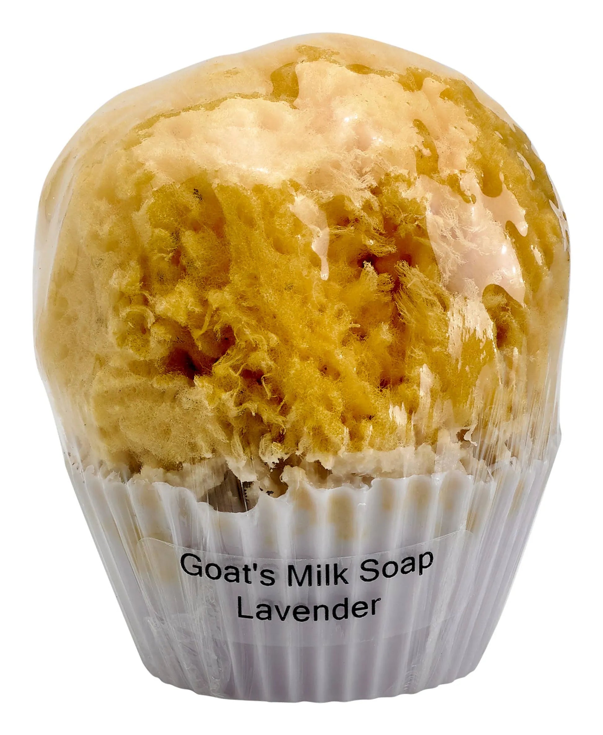 With the same benefits as our larger goat's milk and olive oil bars, our 'cupcake' soaps with an embedded natural sea sponge are next best thing! The sponge goes all the way through the soap and does not come apart. It's like a built in scrubber, you wet and hold the soap and put the sponge against your skin and rub. The lather will come through the sponge.