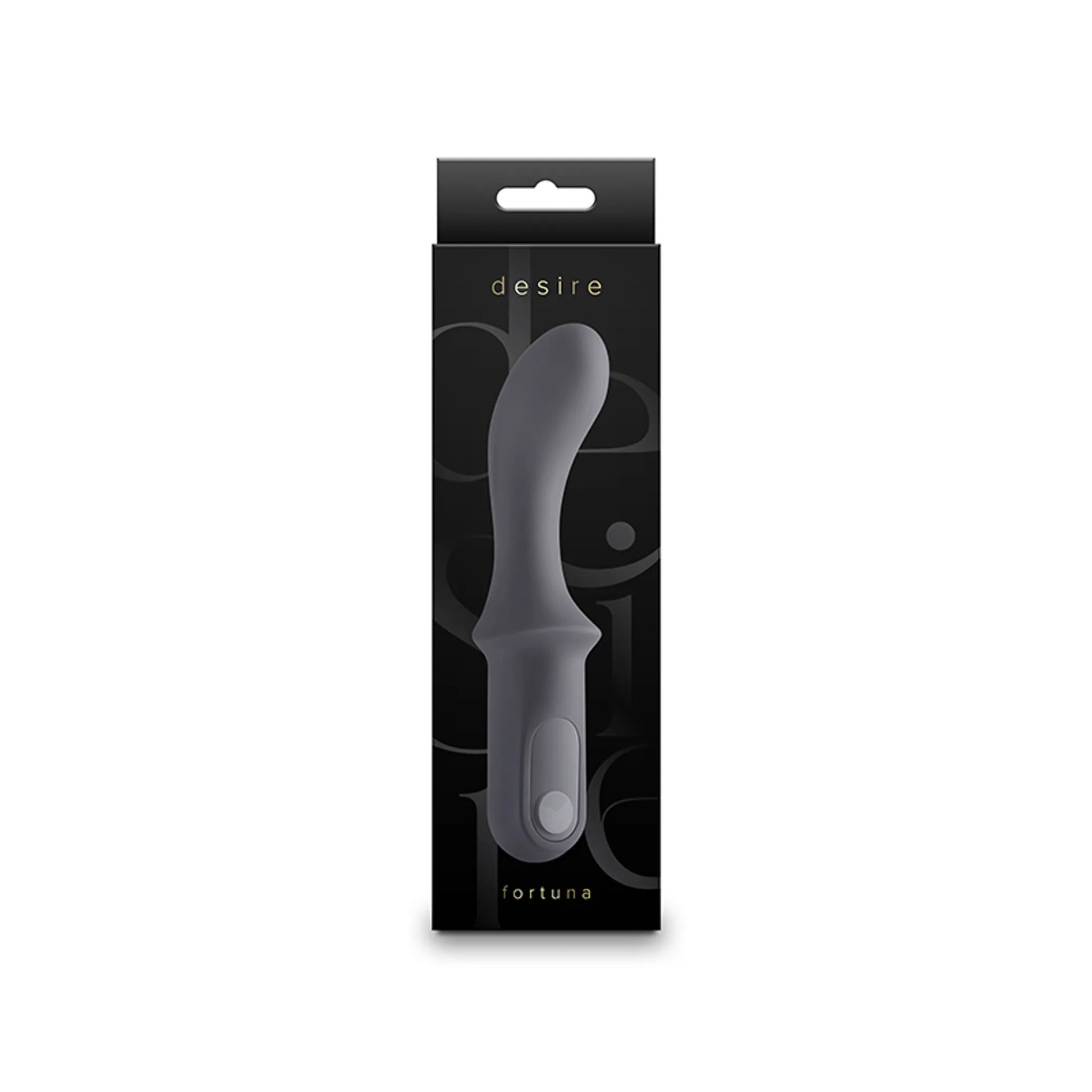 Desire Furtuna Smoke Gray Vibrator from NS Novelties. Get lucky with Fortuna by Desire. This stunning vibe delivers deep and powerful G-Spot vibrations and features a handle for ergonomic comfort. Fortuna is made from premium, body safe Silicone. Rechargeable. Suitable with all lubricants. 3 speeds, 7 functions. Desire Fortuna Gray Smoke Vibrator. Desire Fortuna Smoke._x000D_