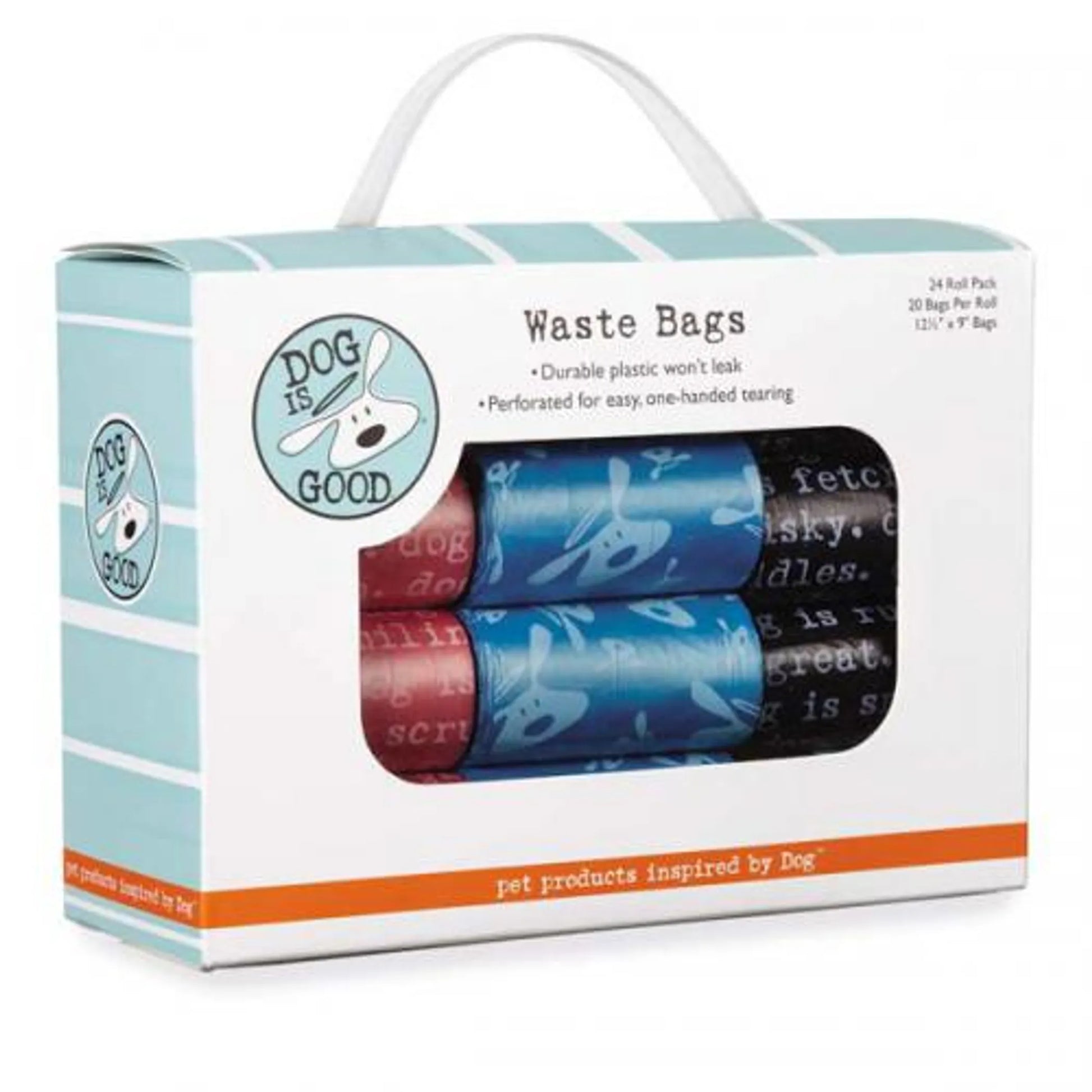 With 24 waste bag rolls in assorted BOLO and Dogism designs, the Dog is Good Signature Waste Bag variety pack is the perfect way for customers to purchase waste bags in bulk.