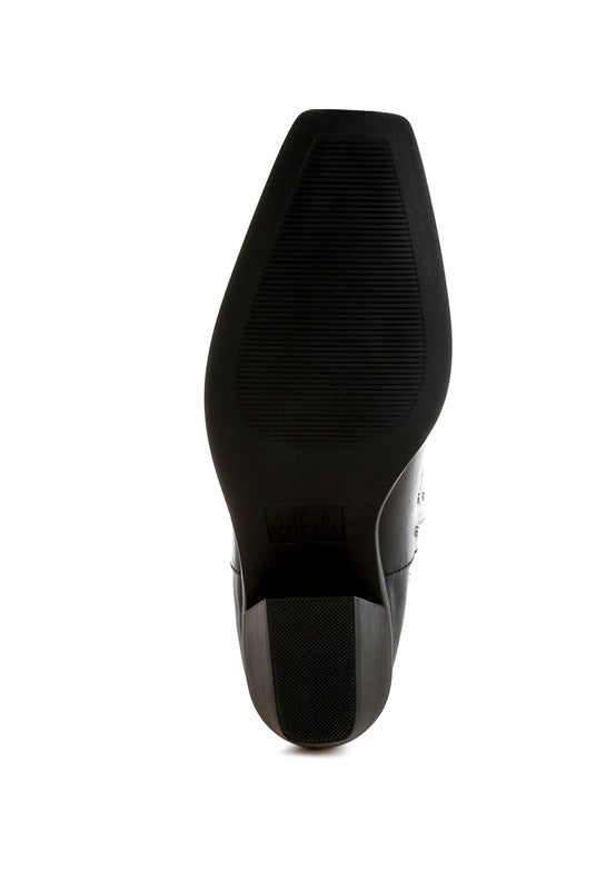 These embroidered cowboy boots with pull tabs are your new style rebels-edgy studs meet Western chic. Perfect for pairing with a maxi skirt or throwing under bootcut jeans, they bring a modern twist to anything you pair them with!