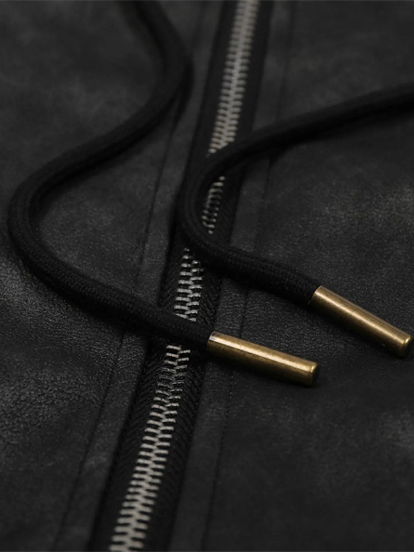 Men's Drawstring Washed Zip Up Hooded Jacket