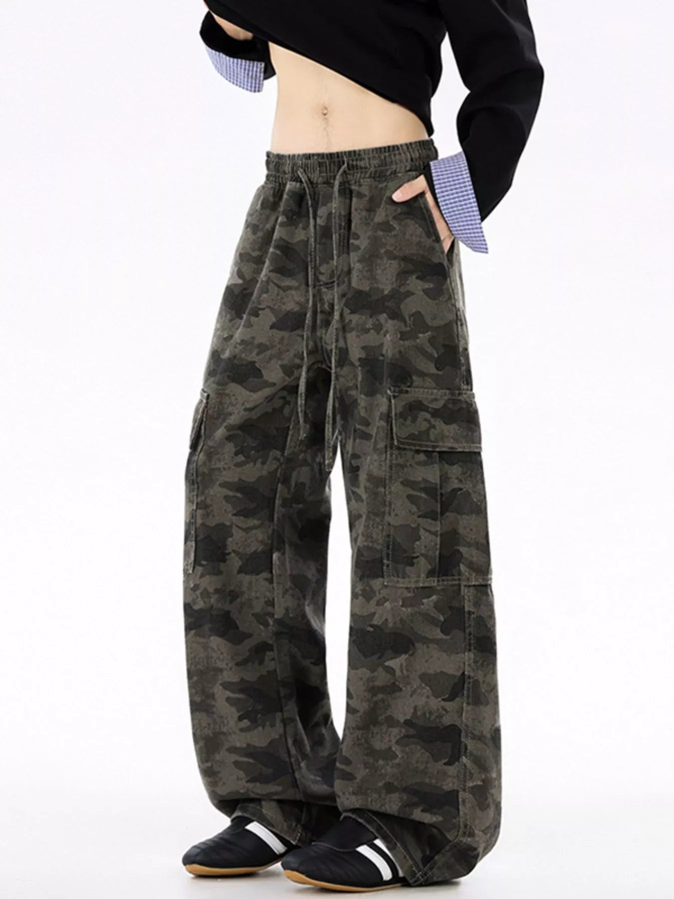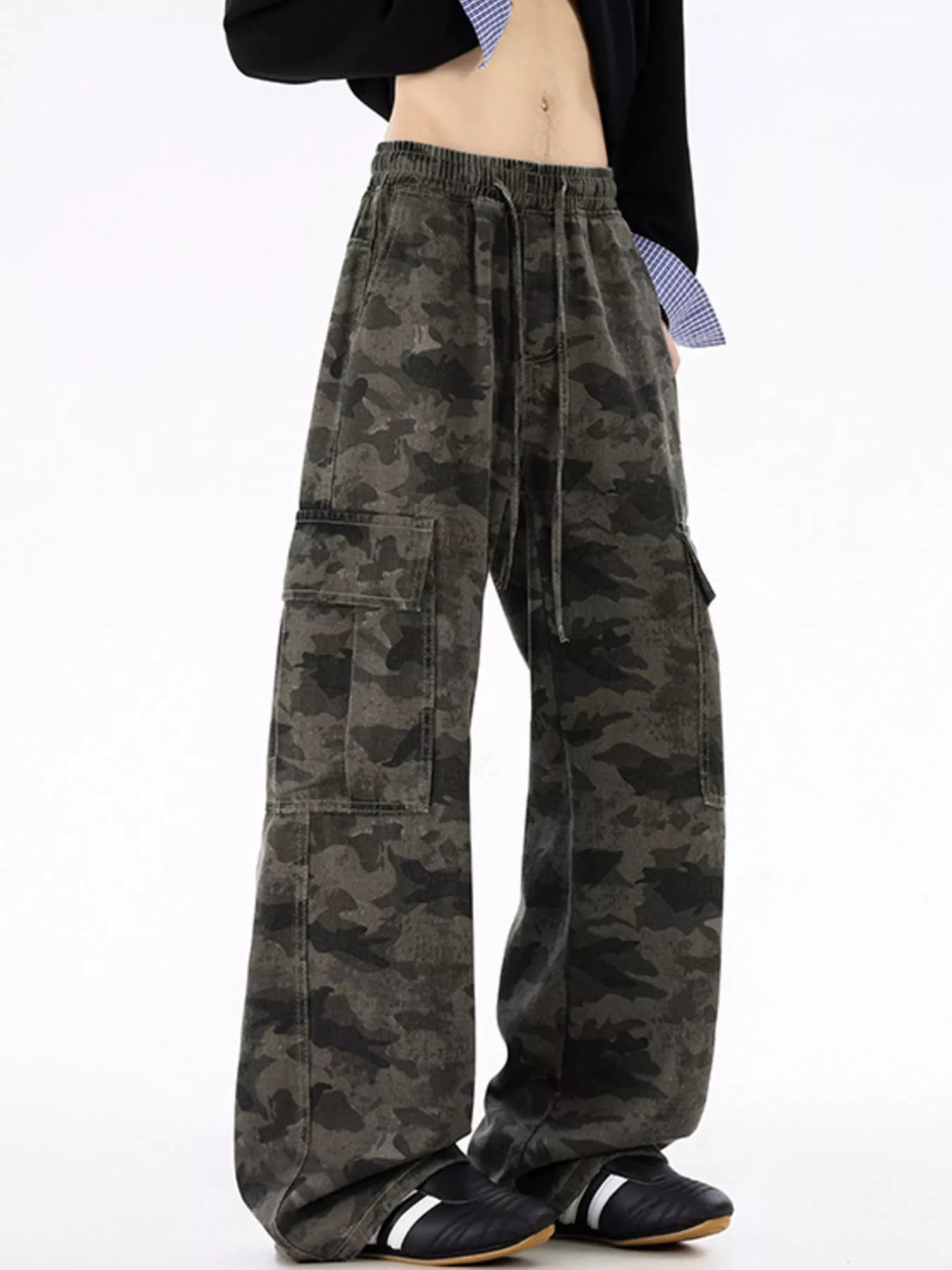 Men's Plus Size Drawstring Camouflage Wide Leg Pants
