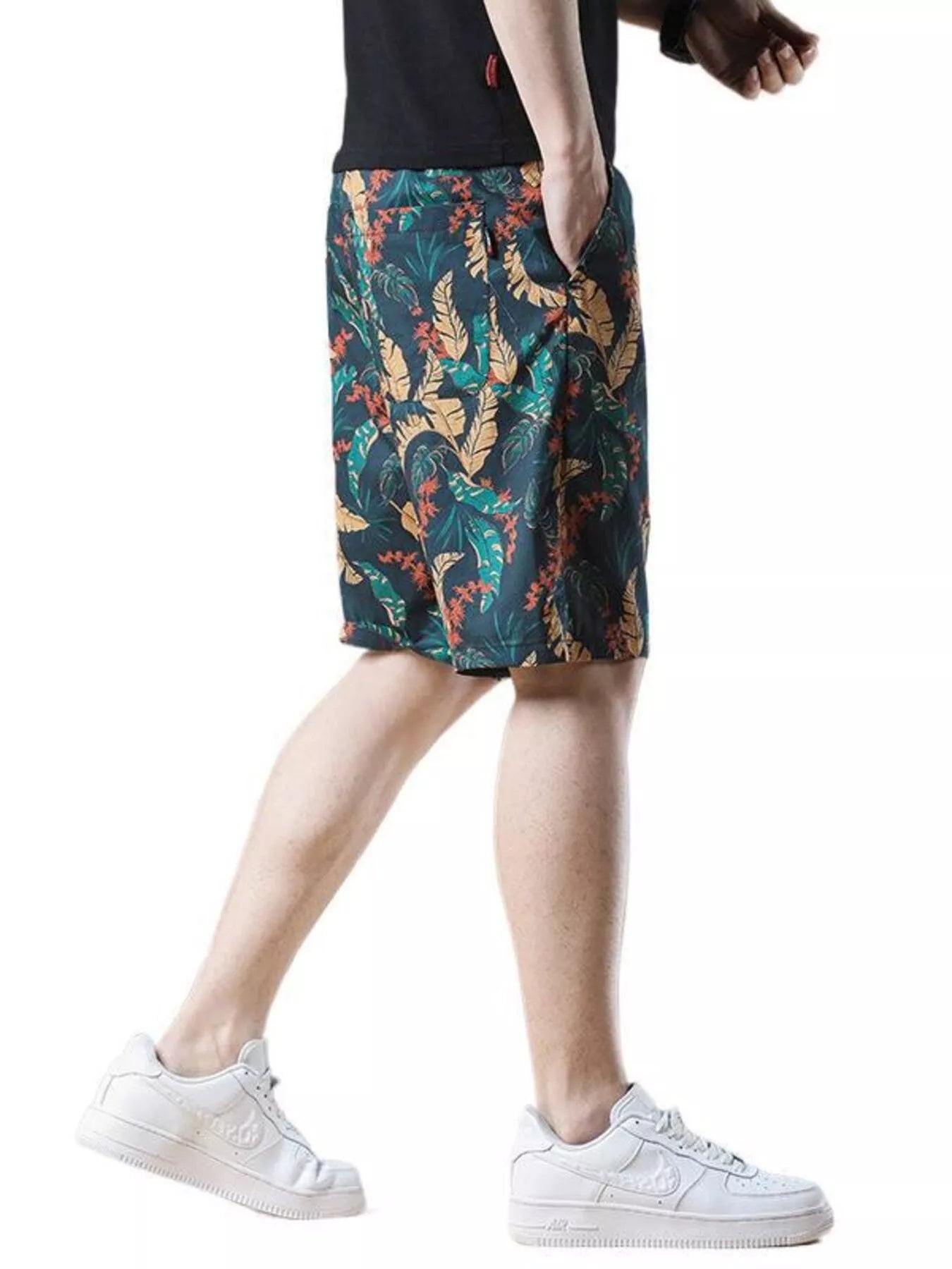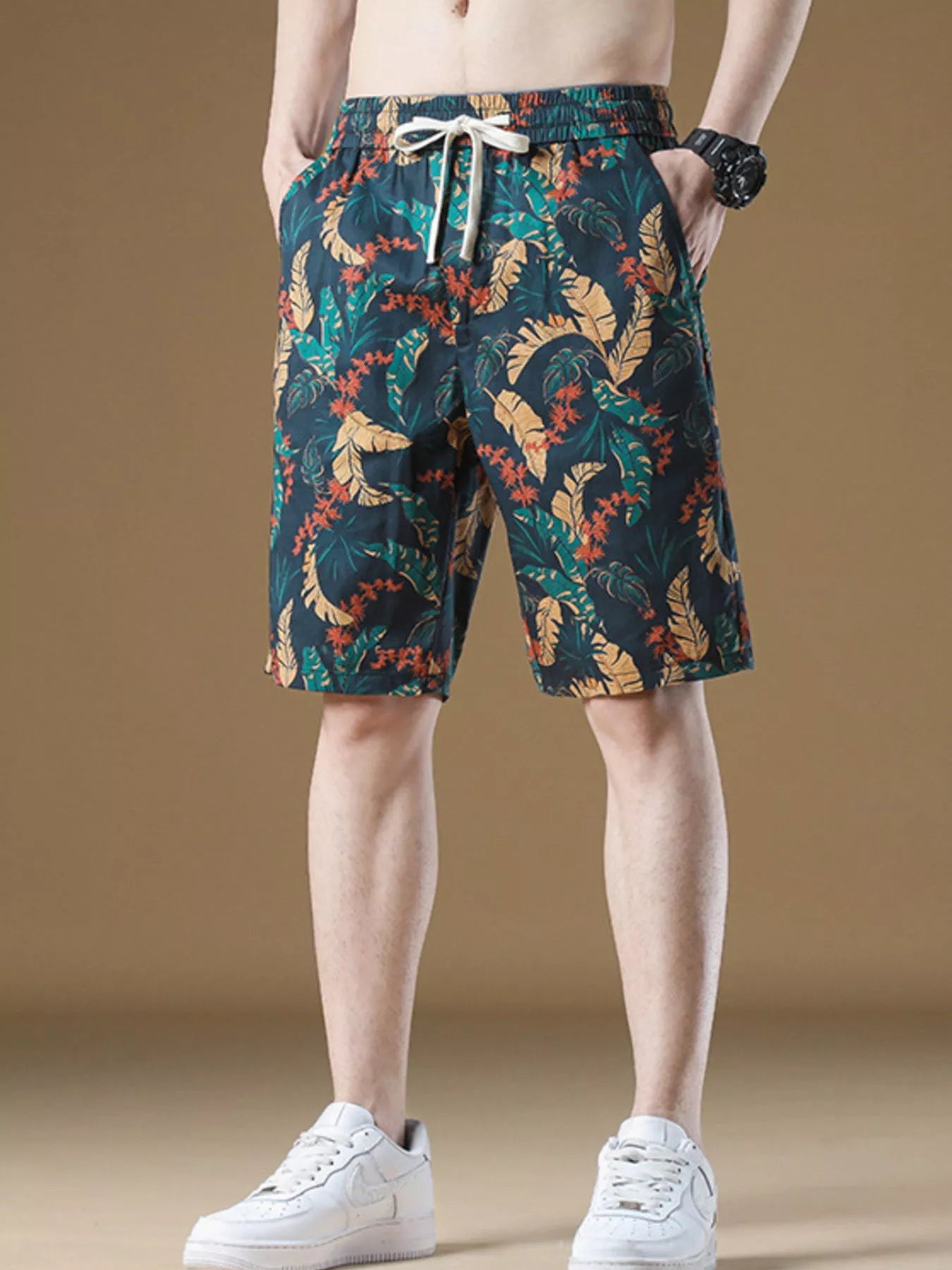Men's Plus Size Drawstring Printed Loose Fit Shorts