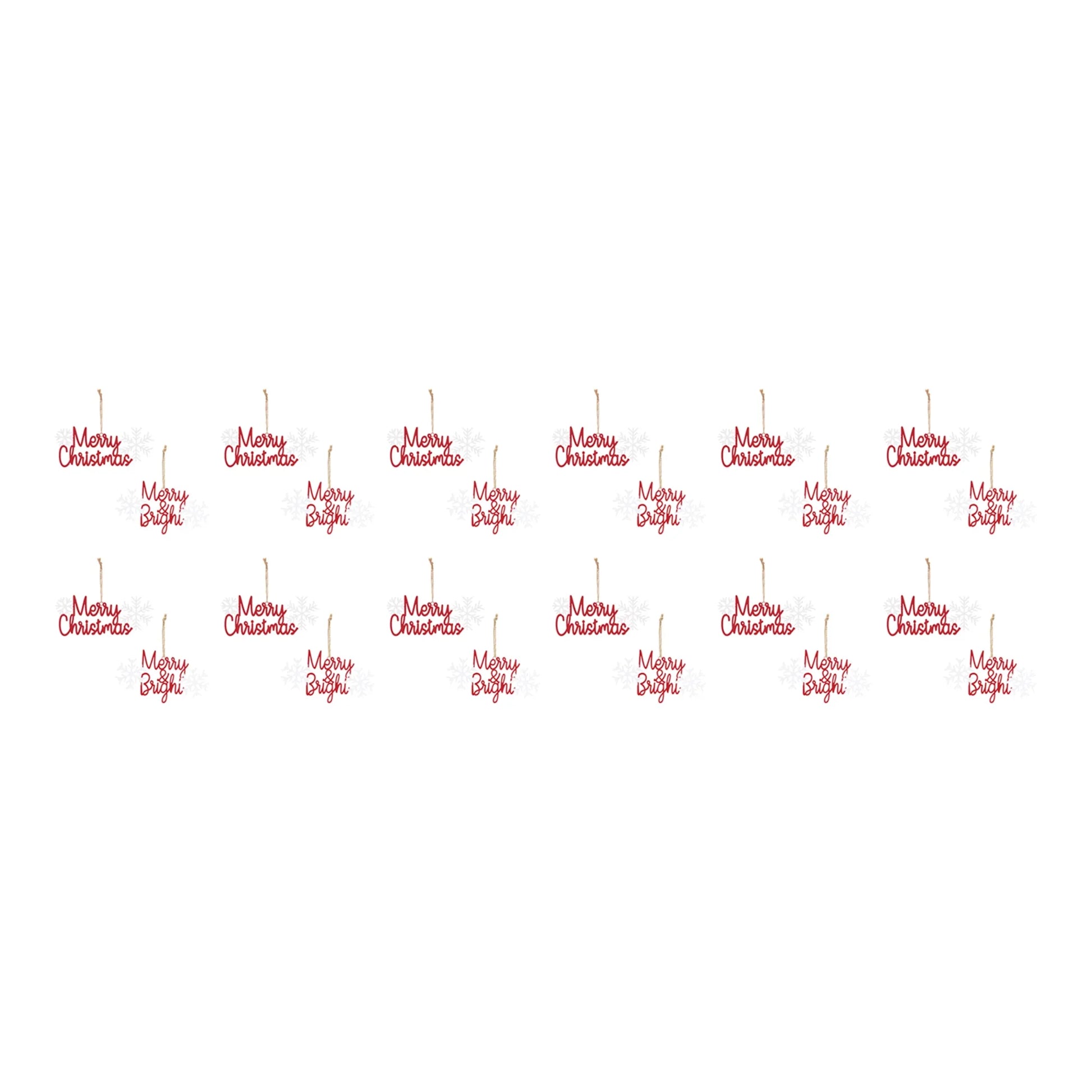 Add a traditional touch to your Christmas Tree with this beautiful set of Holiday Sentiment Ornaments. Featuring 12 pieces, this set's festive red and white tones, traditional "Merry Christmas" and "Merry & Bright" sentiments, and cut-out metal snowflake designs are the perfect combination to create a memorable display. The quality metal composition with delicate jute string hanger is sure to endure for seasons to come. Whether you're adding a touch of cheer to your home or gifting to a loved one, these ornaments will definitely bring smiles to your home.