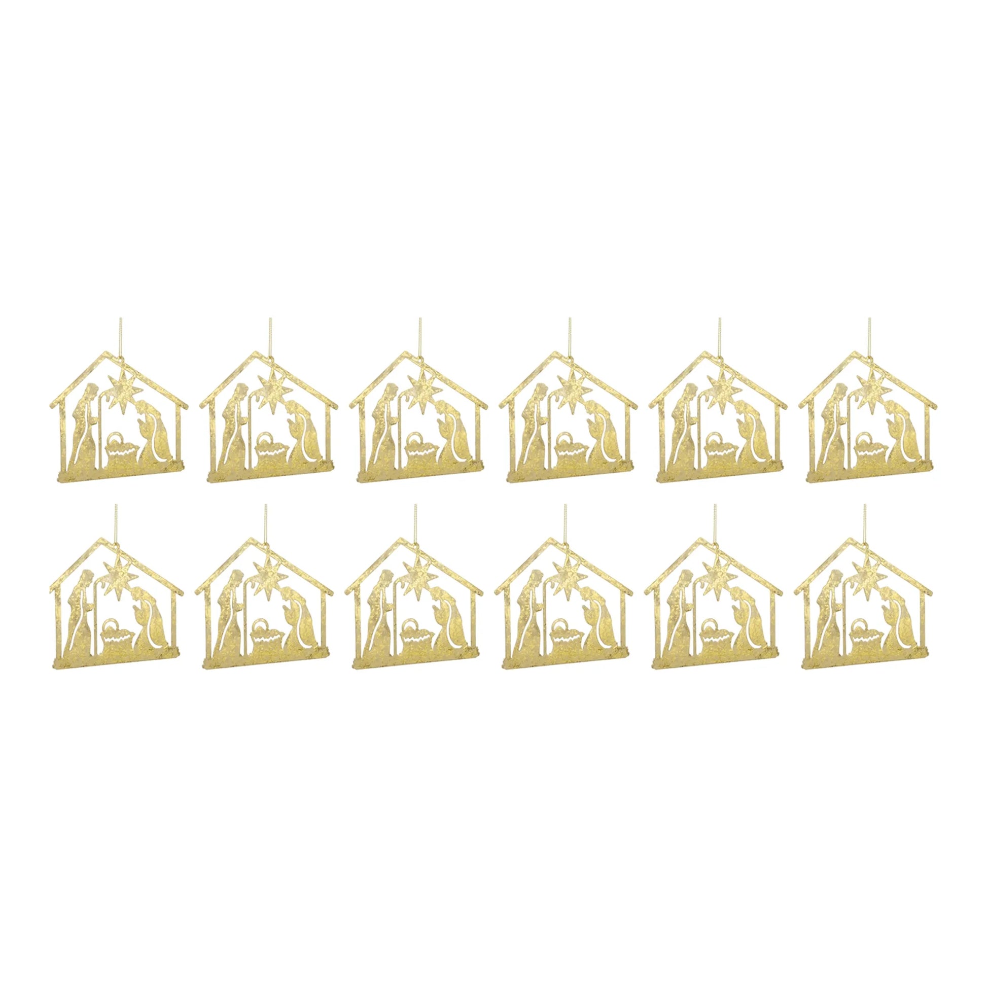 Add a religious touch to your Christmas Tree with this beautiful set of Metal Holy Family Cut Out Ornaments. Featuring 12 pieces, this set's chic gold finish, traditional nativity scene outline, and cut-out metal design are the perfect combination to create a memorable display. The quality metal composition with delicate gold string hanger is sure to endure for seasons to come. Whether you're adding a touch of cheer to your home or gifting to a loved one, these ornaments will definitely bring smiles to your home.