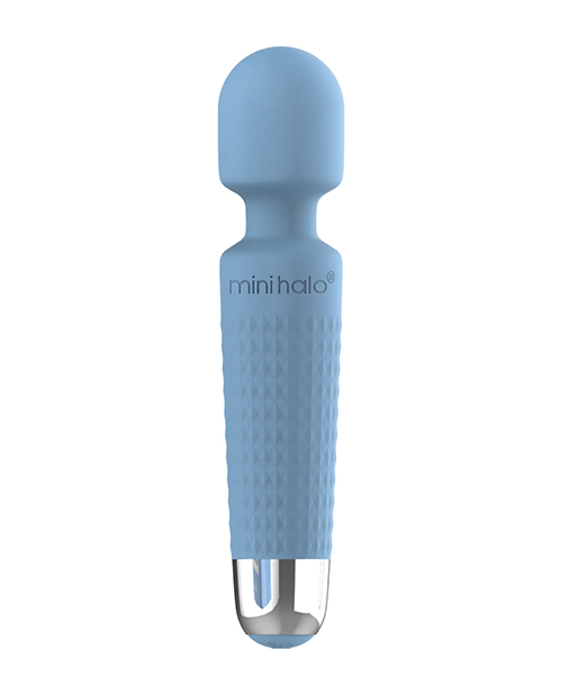 Mini Halo Powder Blue from Thank Me Now - Shibari Wands. Mini Halo Wireless 20X Wand 20 vibration patterns and 8 speed strengths to tailor your massage experience. Bendable neck puts flexible massage action right where you need it! Special high strength motor provides exceptional power, yet quiet vibrations. Material: Silicone head, ABS Plastic handle. USB rechargeable, cable included. 20 vibration patterns and 8 speed strengths to tailor your massage experience. Bendable neck for flexible massage action right where you need it. Special high strength motor provides exceptional power, yet quiet vibrations. Ultra soft, premium grade Silicone for complete comfort. The Mini Halo Massage Wand is rechargeable and comes with a USB power cord with optional attachable plug in. These Mini Wands are 100% water resistant. For use in the shower. Size 6 inches by 2 inches by 1 inch. Thank Me Now - Shibari Mini Wand. 2022.