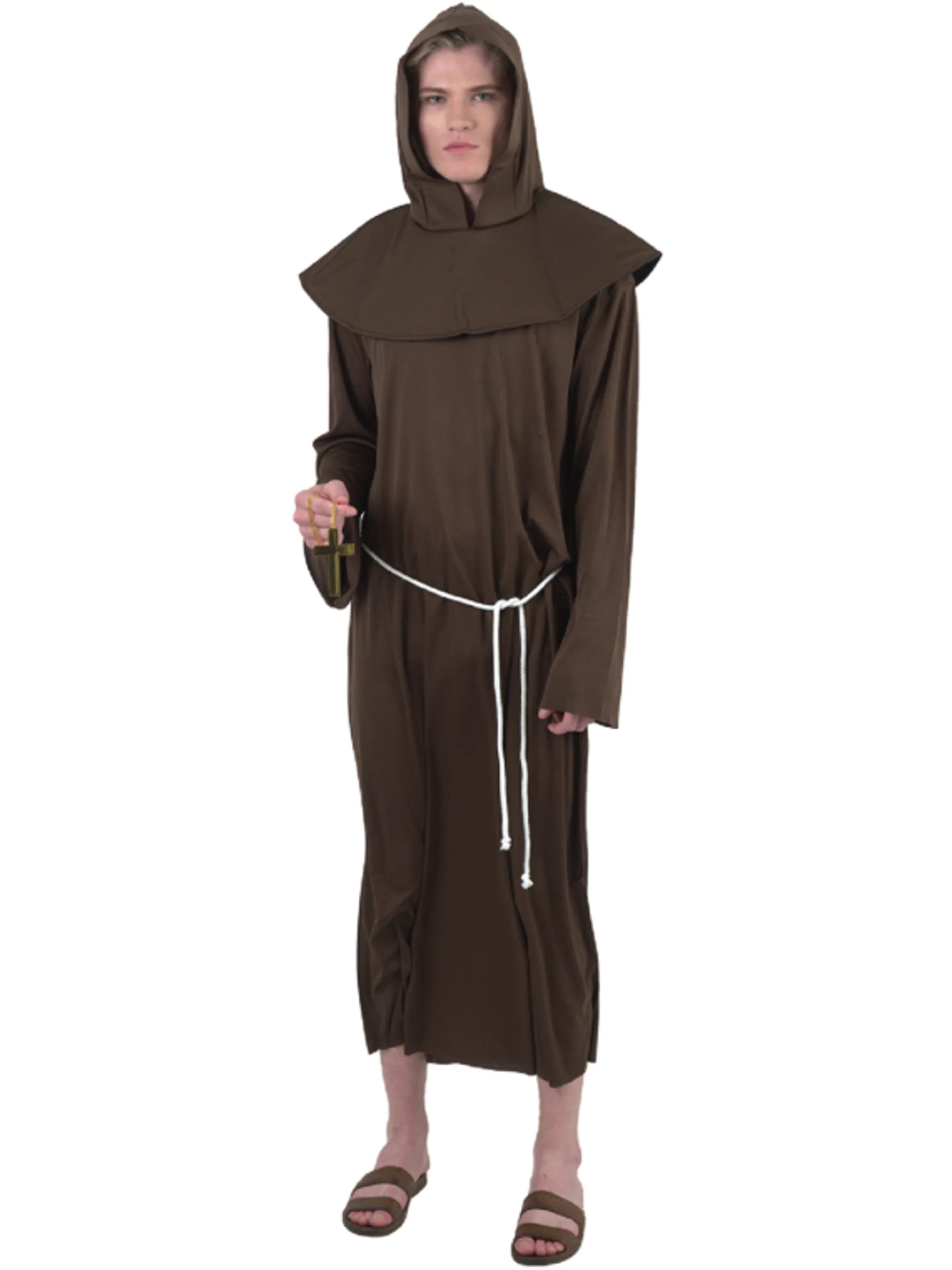Monk Costume in size large. Made of 100% synthetic materials. Hand wash with gentle soap and line dry.