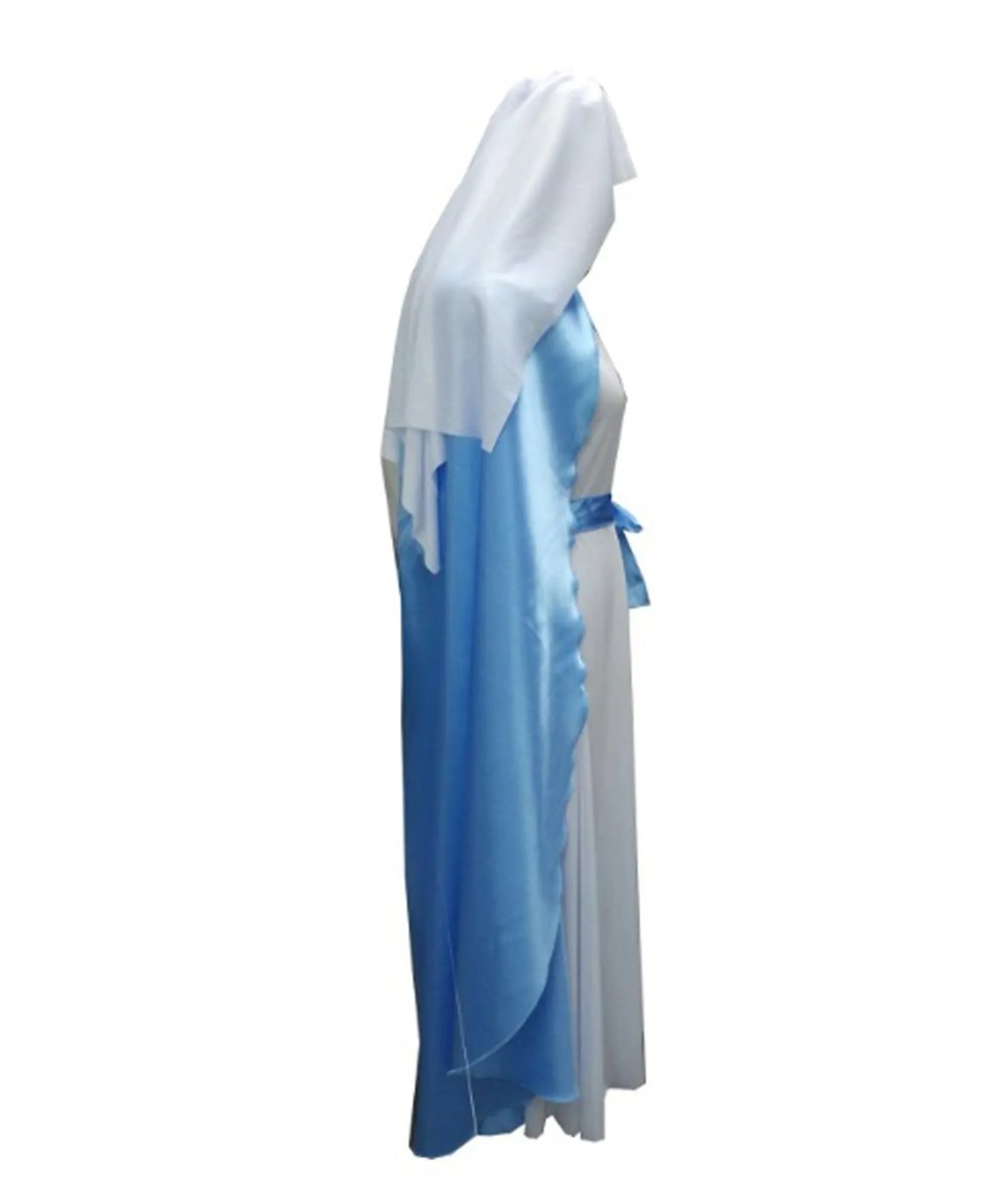 Women's Mother Mary costume in size large. Made of 100% synthetic materials. Does not include wig. Hand wash with gentle soap and line dry.