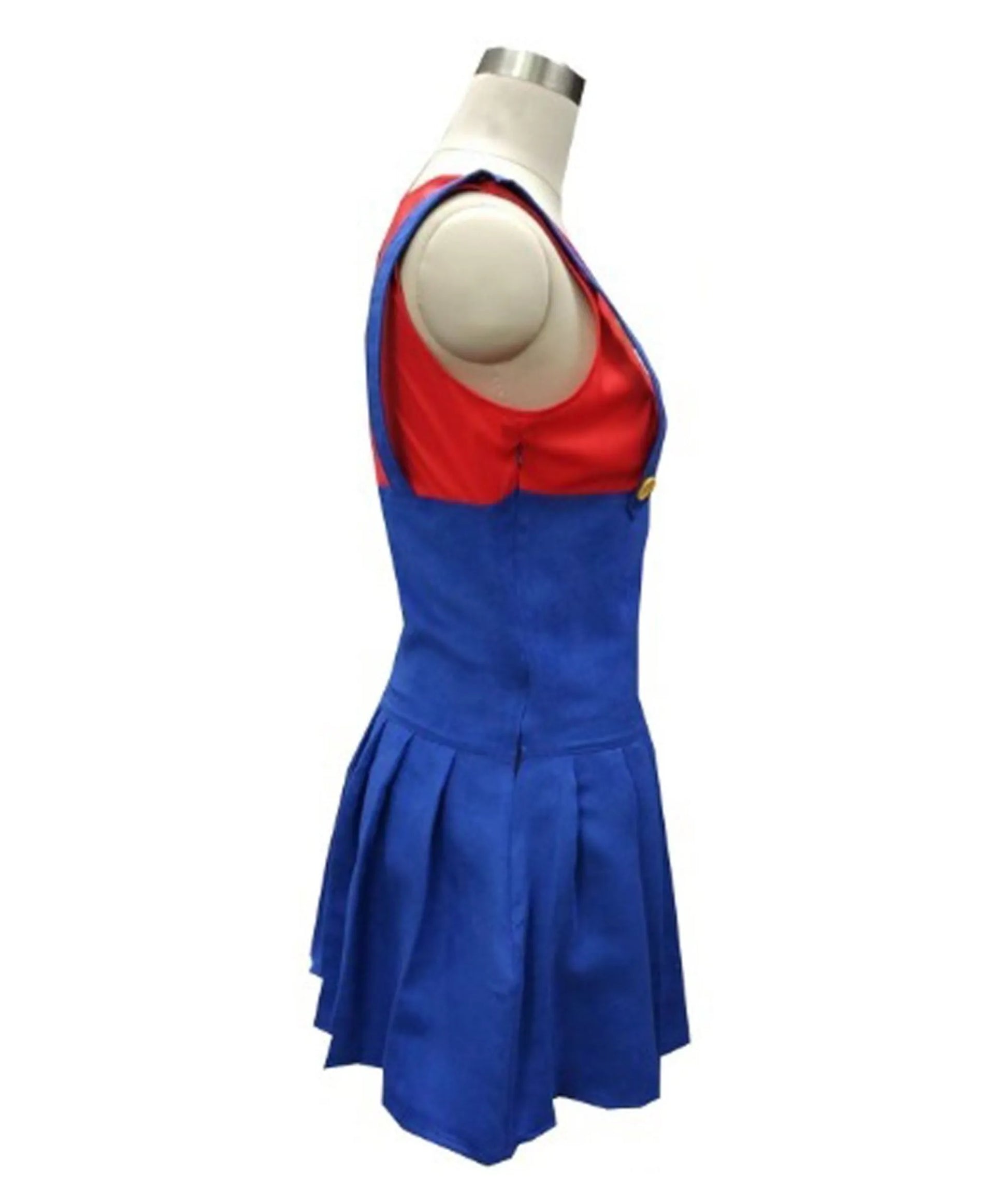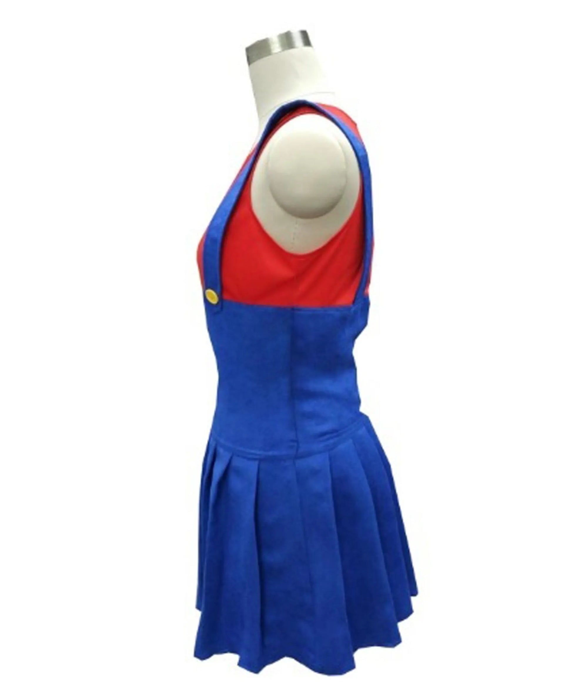 Ms. Red Plumber Costume in size large. Made of 100% synthetic materials. Hand wash with gentle soap and line dry.