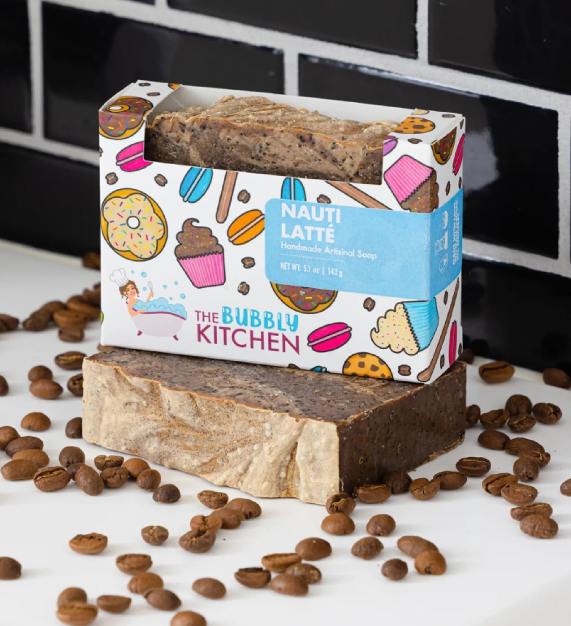 All natural, vegan soap bar, scented in mocha coffee loaded with upcycled coffee grinds from a local roasting company native to Long Island, NY