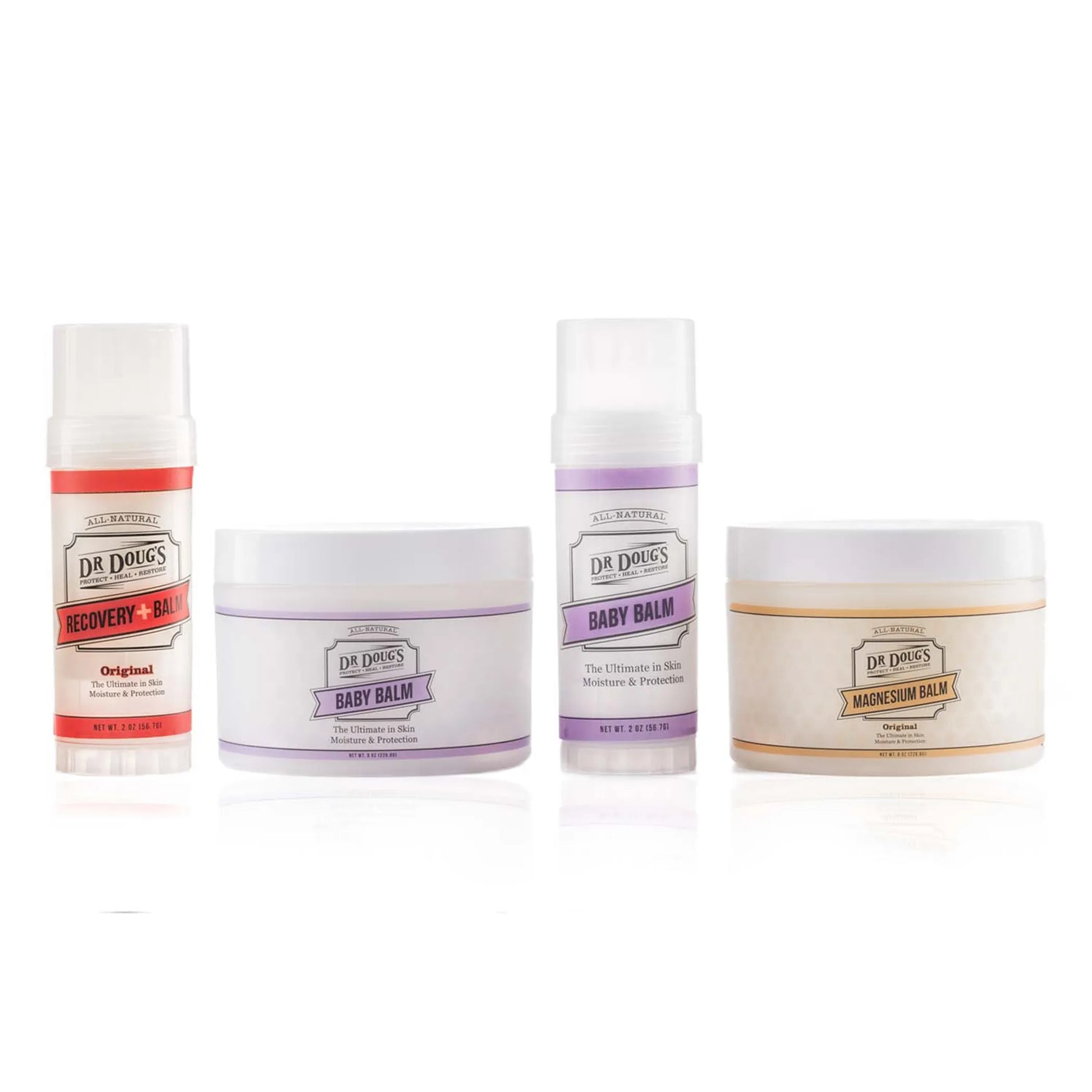 Introducing Dr. Doug's New Mom Toolkit! This bundle includes Magnesium Balm " a mineral that is often deficient in modern diets, but essential for the most basic human functions - an at-home jar, and an on-the-go twist of Baby Balm. All-natural, non-toxic, and the best ingredients for your baby's precious skin.