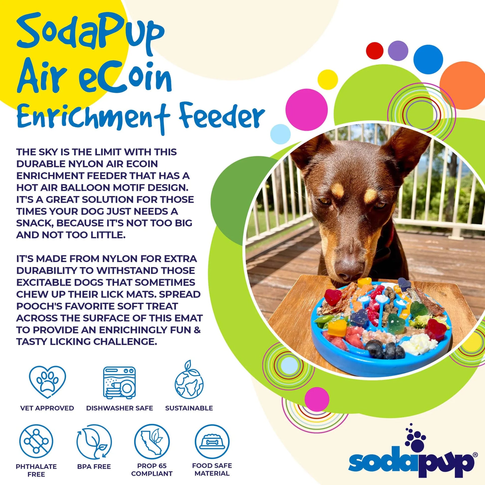 Up, up and away! Sometimes your dog just needs a little snack. SodaPup's new "air" ecoin enrichment coin is the perfect solution. Not too much. Not too little. Just right for your dog to have a snacking challenge. Made from nylon for extra durability!