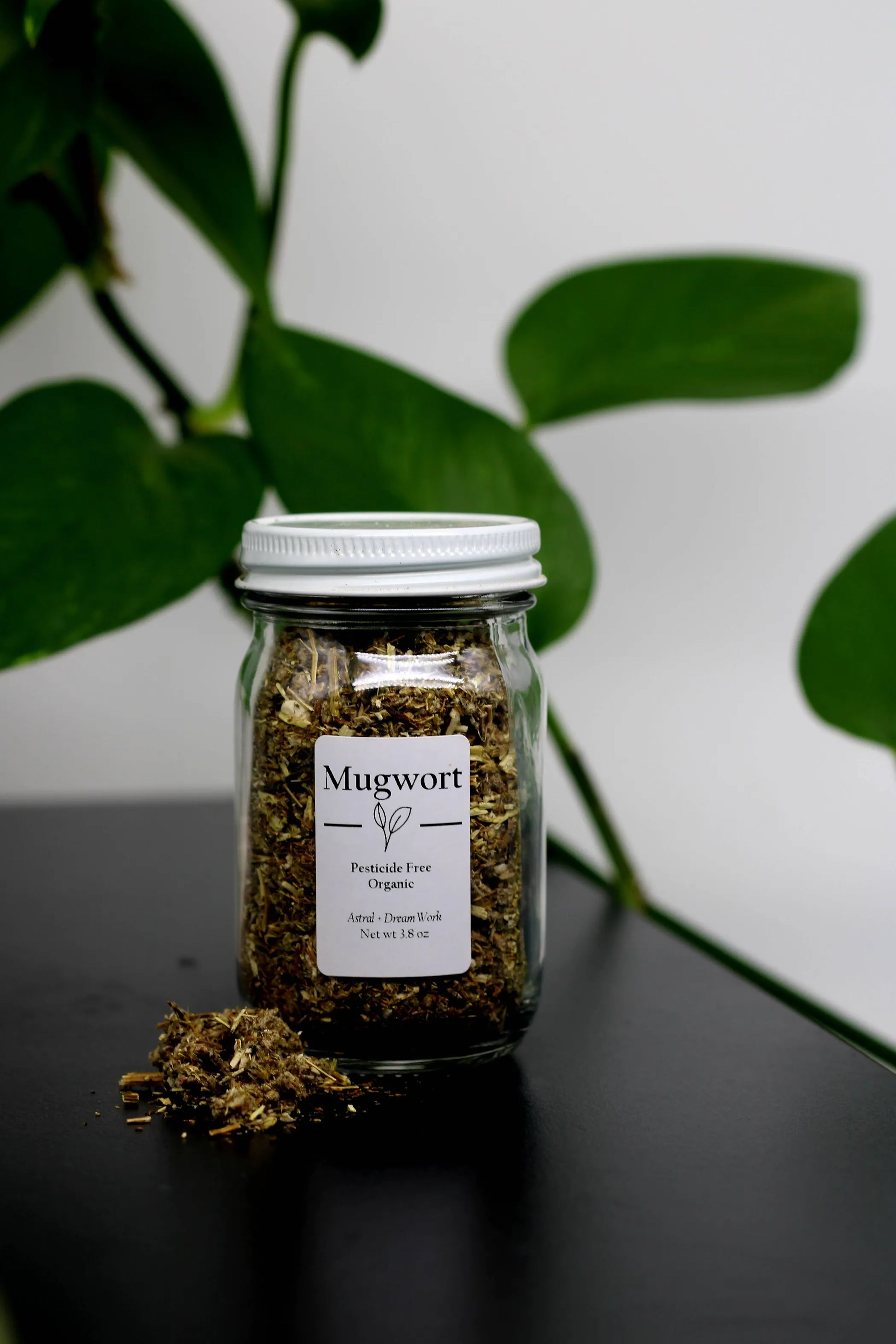 Enjoy edible, organic Mugwort. This loose, pesticide free herb perfect for baking, tea, smoking, scent pillows or baths. Comes in a sealed glass jar Net Weight 3.8 oz.