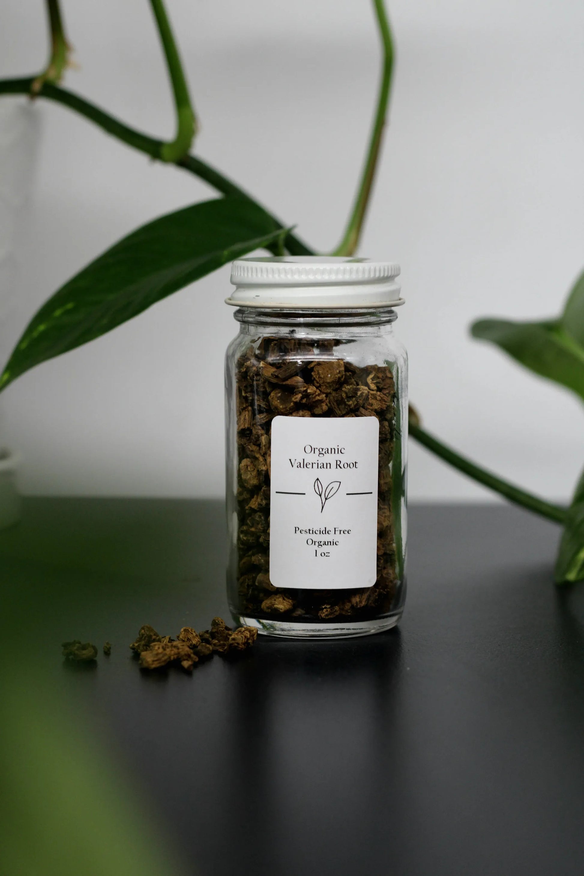 Enjoy organic, Valerian root! Perfect for baking, tea, scent pillows or cleansing baths. Comes in a sealed glass jar with simple brandless labeling.