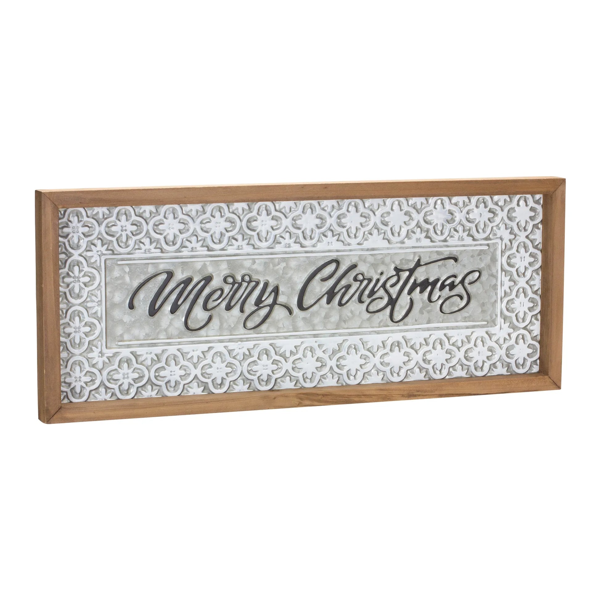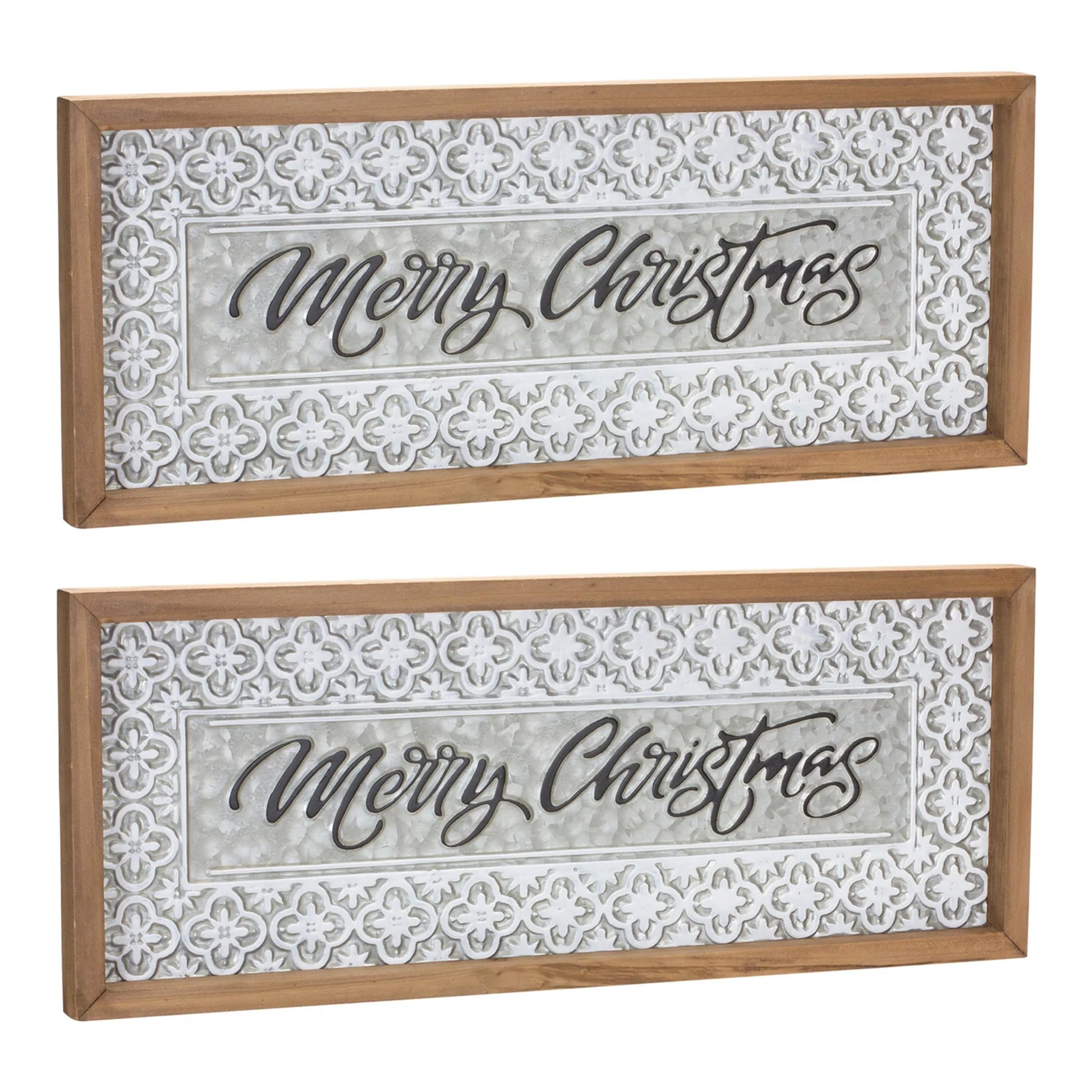Make your holiday season extra special with the Merry Christmas Sign. Featuring an ornate and intricate pattern, galvanized finish, and beautiful cursive "Merry Christmas" sentiment, this elegant iron metal wall decor is sure to add a festive touch to any room. Perfect for spreading holiday cheer throughout your home, let the Pine Tree Wall Art take centerstage.