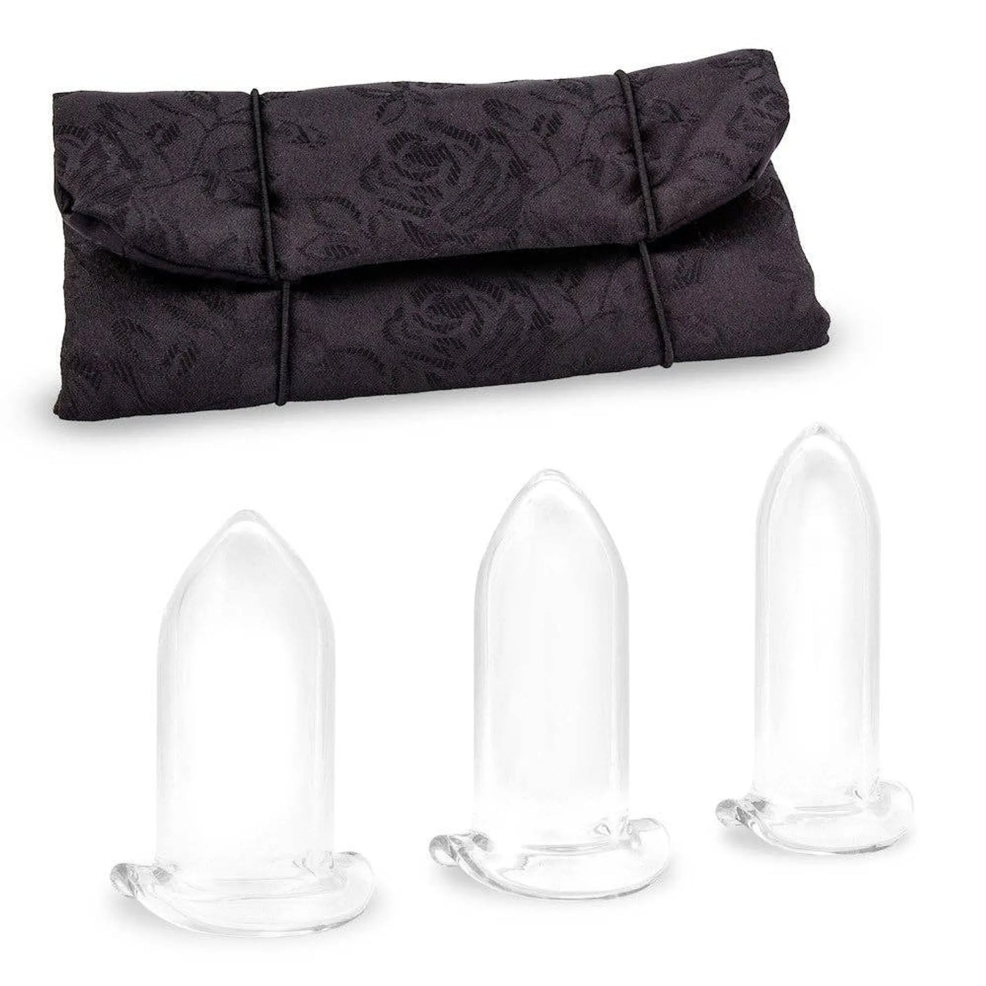 Our hollow glass dilators are specially designed to be worn comfortably for longer periods of time during treatment of various kinds of sexual dysfunction or during the process of sexual reassignment. Our well-researched design features a shorter dilator with a folded "lip" rim that fits comfortably against the body; this allows dilation to be a comfortable process that can be done anytime, anywhere.