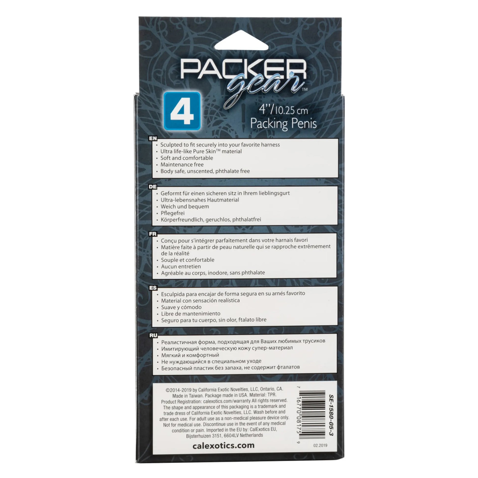 Packer Gear Ivory Packing Penis 4 inches from California Exotic Novelties.The sensual Packer Gear Packing Penis is a realistic male package that makes for a sexy and masculine look. Designed for a comfortable and secure fit in your favorite Packer Gear Harness, the super soft and pliable Packing Penis is ideal for anyone looking to show off these natural feeling goods. Made from ultra life like, unscented phthalate free Pure Skin material, the sculpted Packer Gear Packing Penis measures a natural length, features realistic skin folds and a textured Scrotum. The Packing Penis is maintenance free and it has a uniquely designed base that securely fits into the super stretchy reinforced O-rings of comfort fit Packer Gear Harnesses. Enjoy a new level of masculinity and confidence with the Packer Gear Packing Penis. Uniquely designed base for secure fit in Packer Gear harness or your favorite accessory. Soft and comfortable, the perfect packing penis. Ultra life like Pure Skin material. Maintenance free. Safe and pure for body and pleasure. Made using phthalate free materials Thermoplastic Rubber TPR. Bulk weight 5.8 ounces. Measurements: 5 inches by 3.25 inches overall. 4 inches by 1.5 inches Penis. Bulk weight 5.8 ounces. Package 6.3 ounces. Package: 2 inches by 4 inches by 8.5 inches. Categories: Dildos, Dongs, Realistic Small, Medium, Fleshlight and Packers, Dildos and Dongs Realistic. 2023.