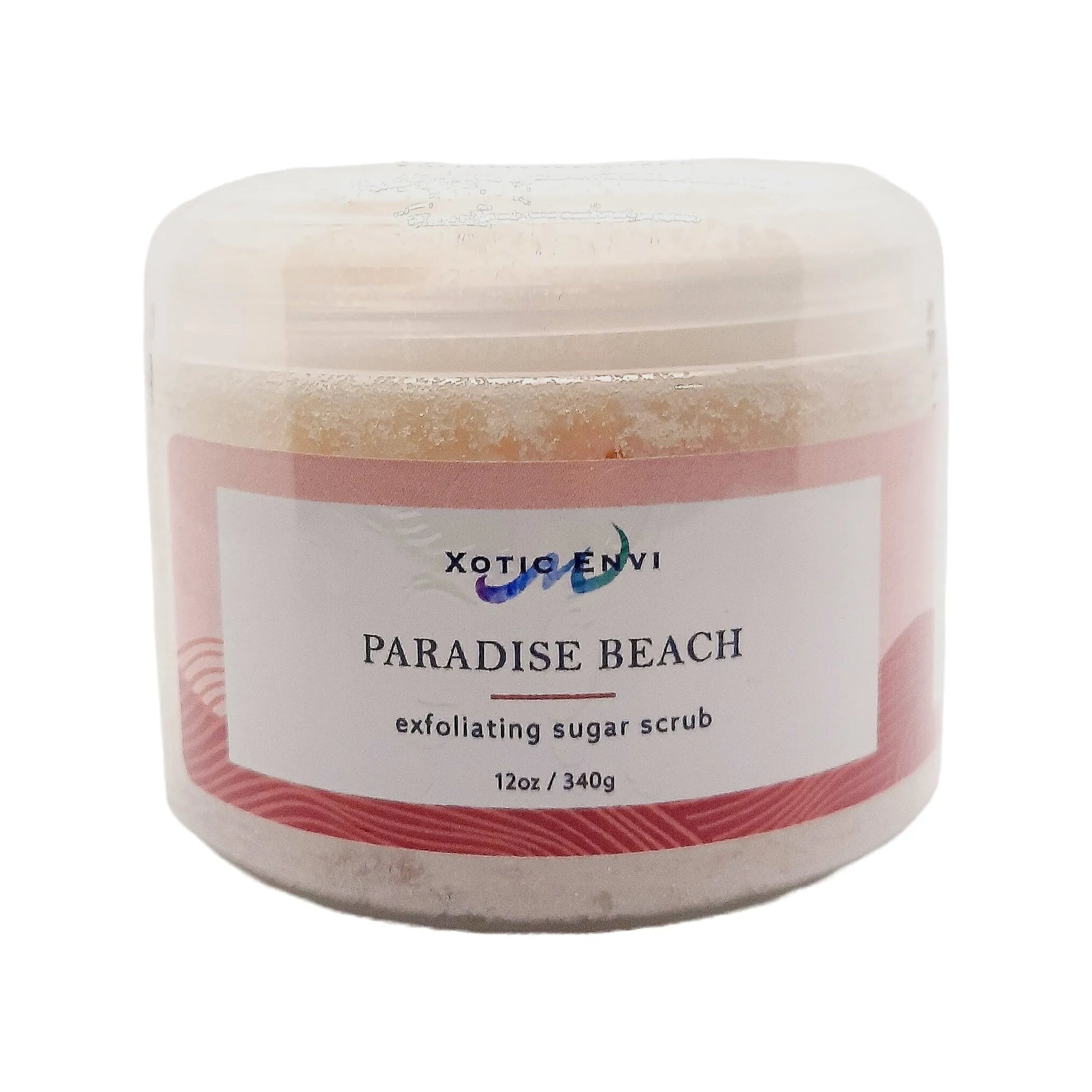 Xotic Envi Paradise Beach Exfoliating Sugar Scrub granules are infused with moisturizing rice bran oil and mineral-rich sea kelp to leave your skin smooth, glowing, and hydrated. This scrub is reminiscent of a gorgeous day at the beach complete with warm sand, sea spray, salt, jasmine and mandarin. Use as an in-shower exfoliating treatment. Gently scrub face and body after cleansing, then rinse and pat dry.