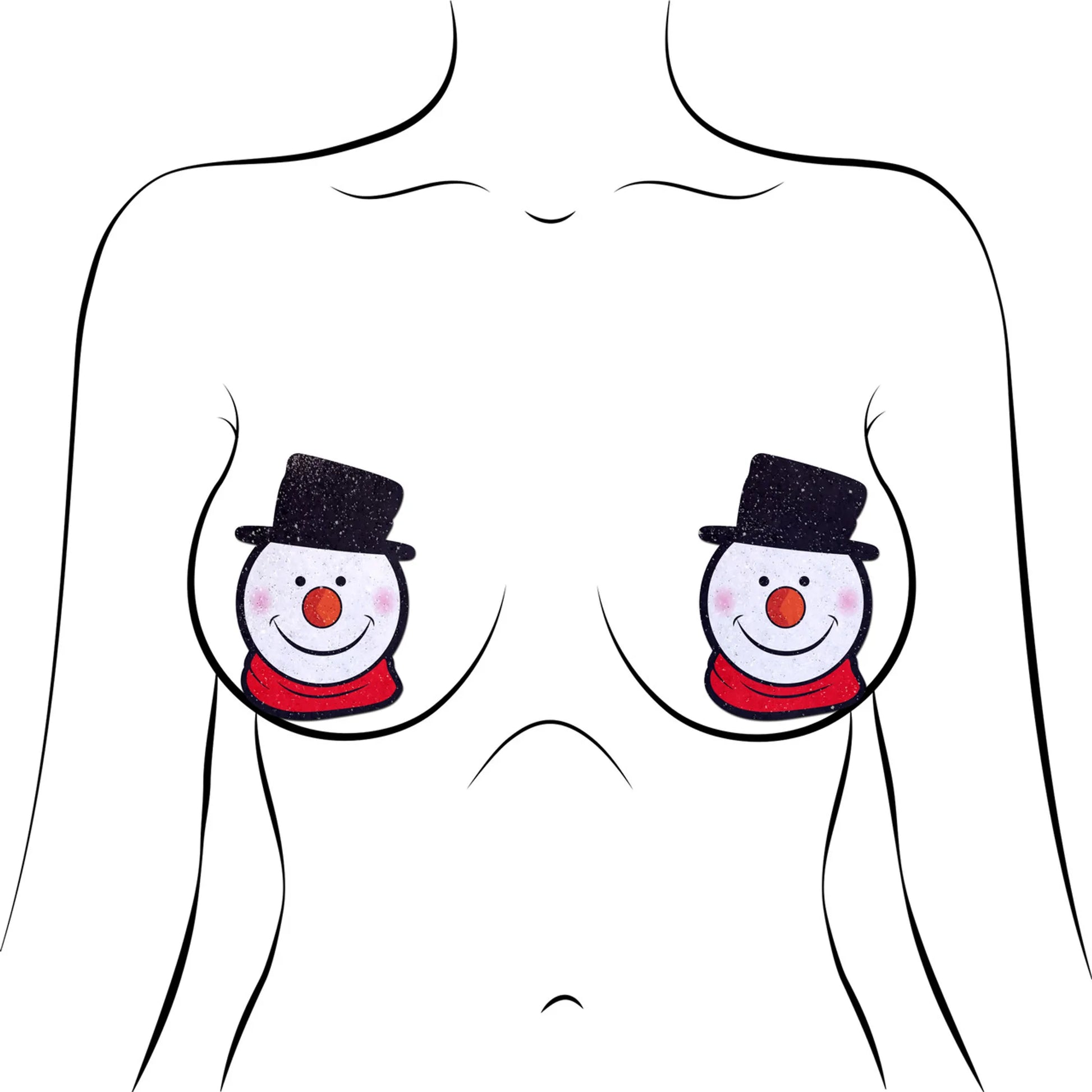 Pastease Snowman with a top hat White seasonal pasties. Snowman Nipple Pasties by Pastease Brands. Hand made in the USA of soft form fitting material that forms seamlessly to curves and resists wrinkling over hardening nipples. Easy to apply. Just peel and stick on clean, dry skin. All Pastease pasties feature latex free, medical grade, waterproof adhesive that stay securely in place for as long as you like and until they are gently removed. Conceal or reveal with Pastease nipple pasties when worn with a sexy outfit, daring bikini, sheer top, revealing dress, Hefty bag, body lotion, crazy costume, party theme or nothing at all! Dimensions: 2.7 inches by 3.9 inches. Coverage diameter 2.5 inches. Pastease Brands are the fun maker that brings out your inner Tease! All Pastease products are hand made, so the finished product you receive may vary slightly from the posted image. Go get your sexy fun freedom On! XOXO Pastease! New primary image package. Categories: Lingerie, Clothing, Sexy Costume Accessories, Frosty the Snowman, Holiday items, Pasties and Accessories. Restricted, Amazon Restricted. 2023.